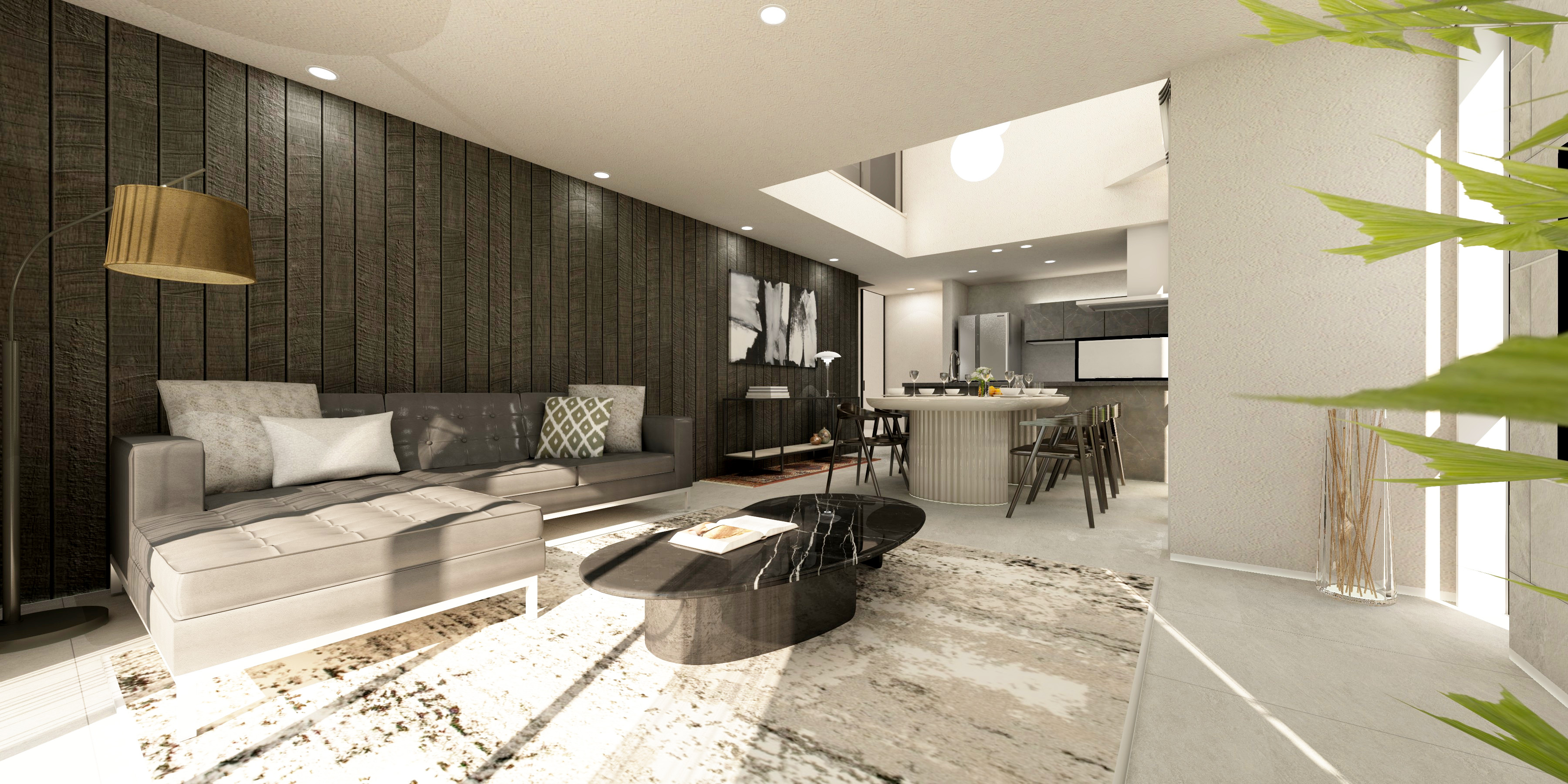 当社は、土地の仕入れから設計、施工、販売、アフターサービスまでを自社で一貫して担う体制を整えており、本プロジェクトにおいても、自社の建築士が4邸それぞれを邸別に設計しています。建売でありながら“一つとして同じ住まいをつくらない”というコンセプトのもと、敷地の個性を丁寧に読み解き、邸ごとに異なる表情を持つ住まいを創り上げています。