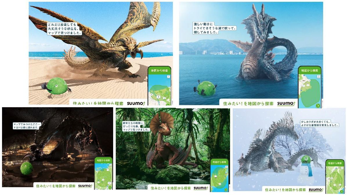 『SUUMO』と『モンスターハンター』がコラボ あのモンスターたちが全国の名所を新たな住みかに!? SUUMOの「地図検索機能」で“生態に合う”住まいを検索