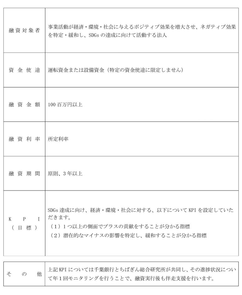 ちばぎんポジティブインパクトファイナンスの商品概要