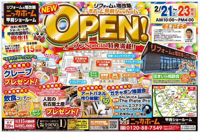 山梨県内初の常設拠点として、地域の皆さまに寄り添ったリフォームサービスの提供を目指し、オープンを記念した3日間限定のイベントを開催します。