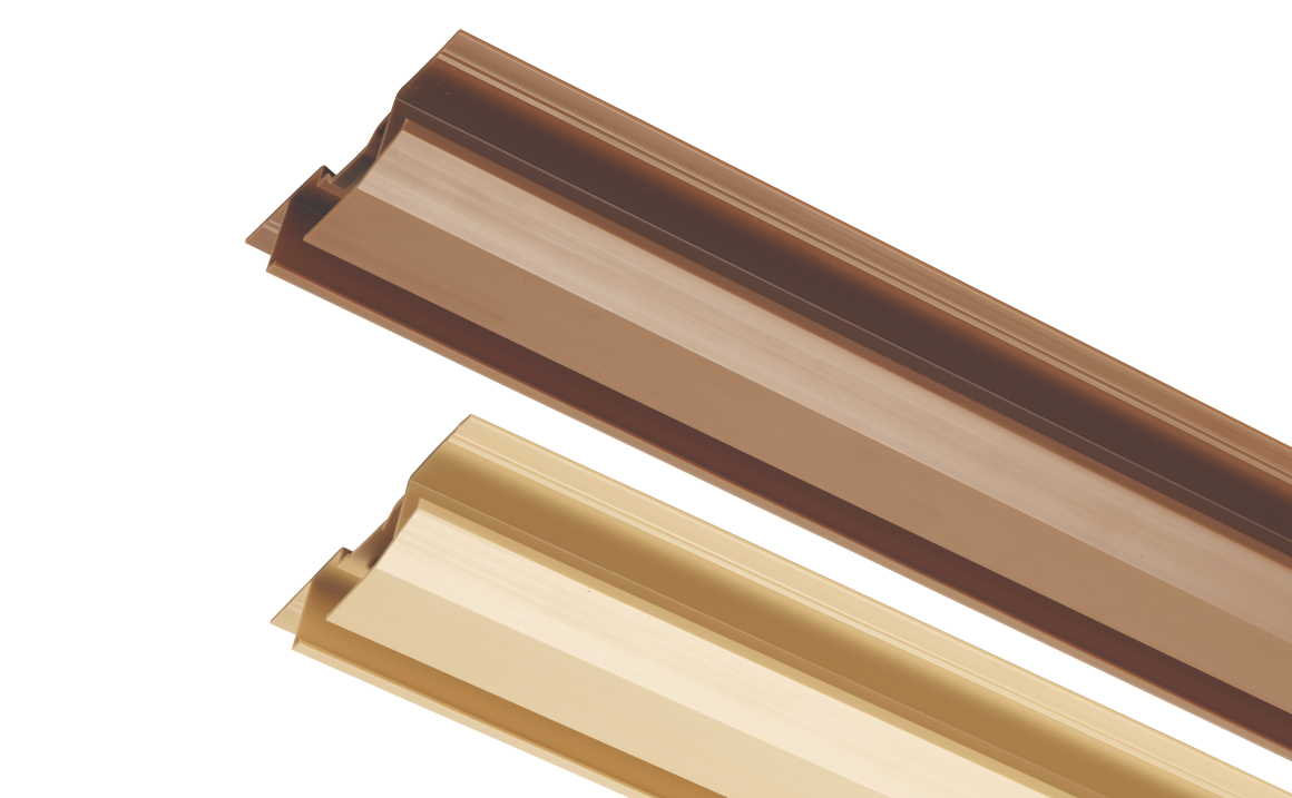 換気スリットが見えず、軒先・壁際に使用可能な樹脂製の軒天換気材に、お客様からのご要望の声が多かった「ナチュラルブラウン」と「レッドブラウン」の2色を、軒天換気材の新色として追加発売しました。
