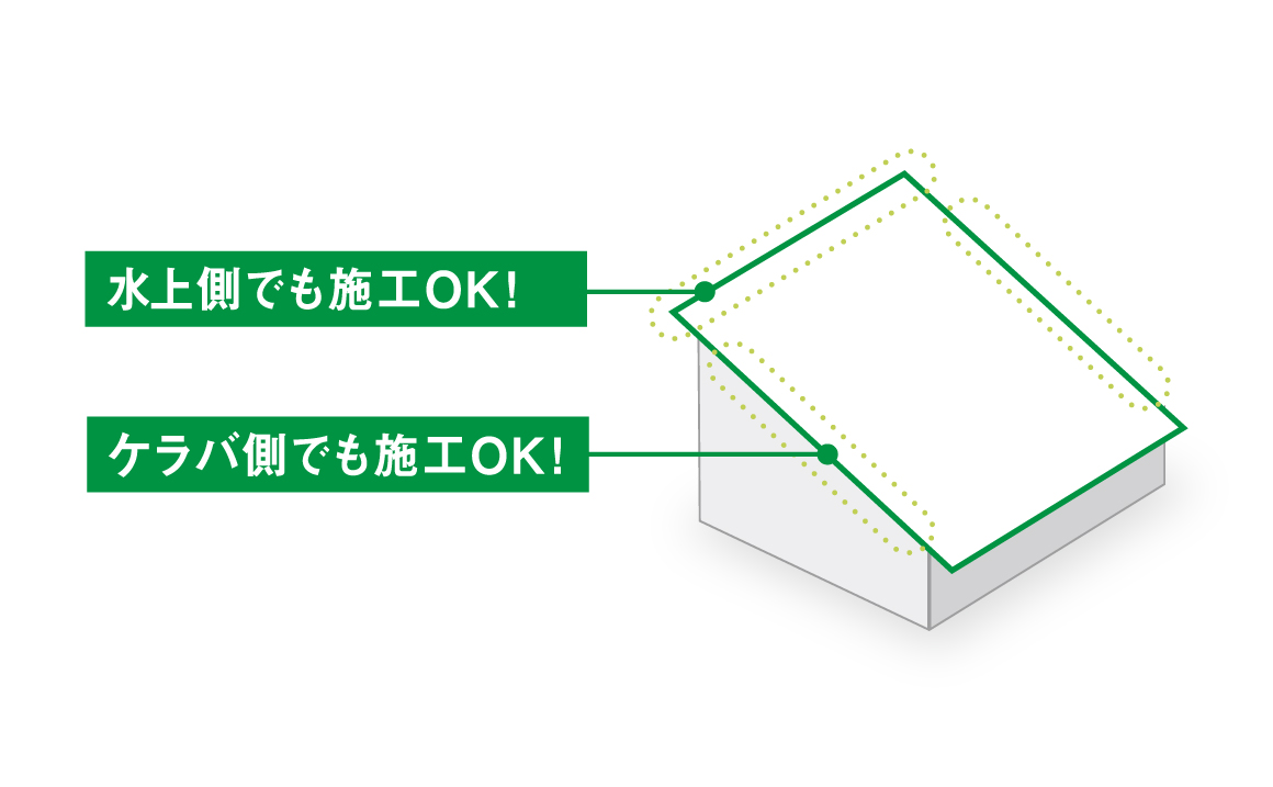 雨風が吹き込みやすい屋根の水上側・ケラバ側にも安心して使用できます。屋根の全周に施工が可能となり、換気量に悩むこともありません。送風散水試験をおこない、高い水密性能を確認しています。