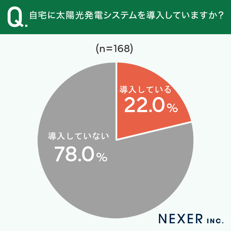 ということで今回は鈴木環境建設株式会社と共同で、事前調査で「注文住宅を建てたことがある」と回答した全国の男女168名を対象に「太陽光発電システムの導入状況」についてのアンケートをおこないました。