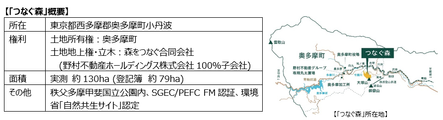 野村不動産ホールディングス株式会社(本社:東京都港区/代表取締役社長:新井聡、以下「当社」)は、当社グループが東京都西多摩郡奥多摩町にて保有する「つなぐ森」を軸に、気候変動や生物多様性の損失等の社会課題の解決、および自社グループにおける不動産開発事業等での利活用を目指して推進する「森を、つなぐ」東京プロジェ クトが、農林水産省、環境省、消費者庁が主催する「サステナアワード 2025」において農林水産大臣賞を受賞したこ とをお知らせします。