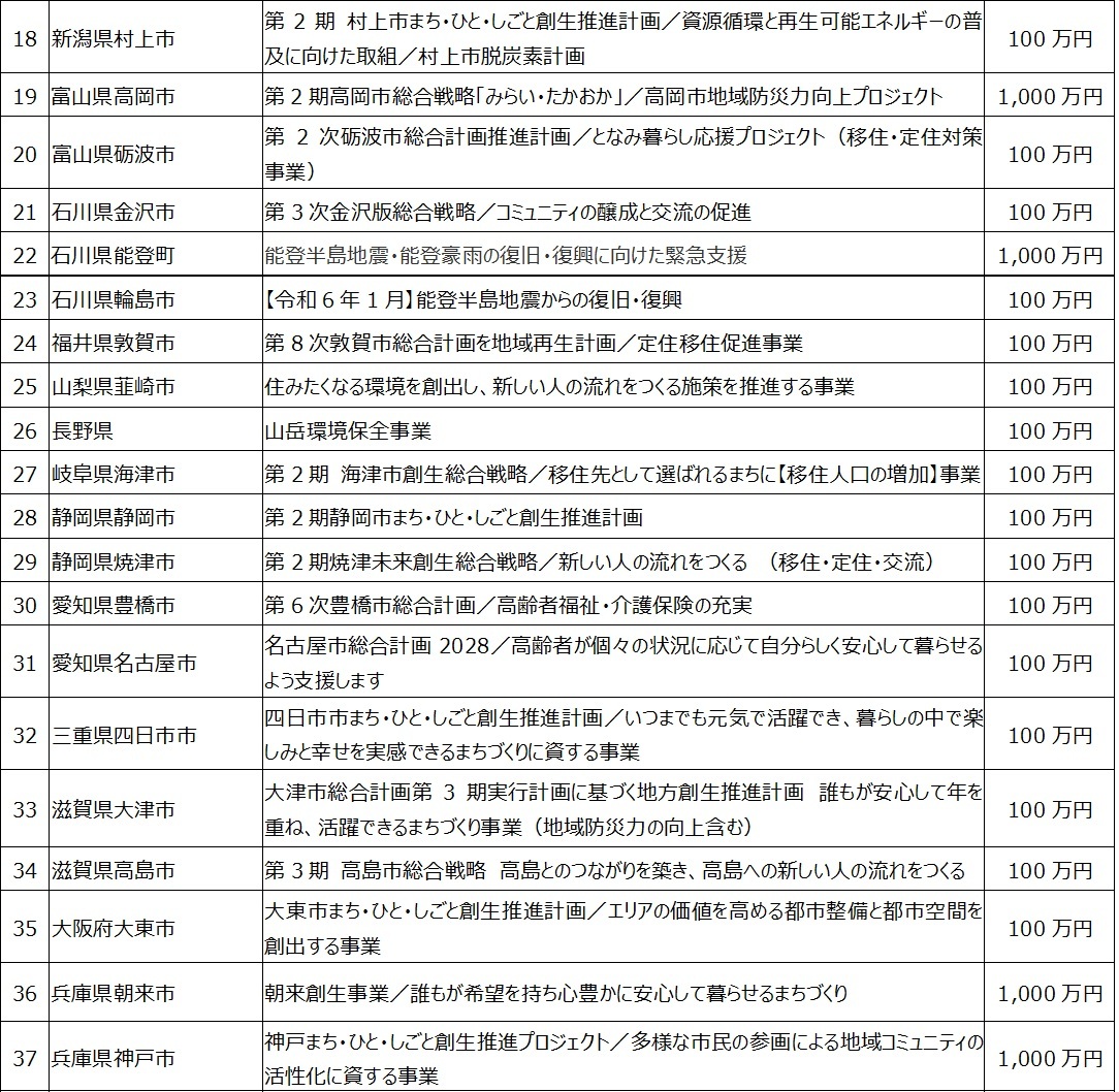 • 「未来をひらく地方創生応援プロジェクト」始動、企業版ふるさと納税寄付先を初公募(2024年6月20日)