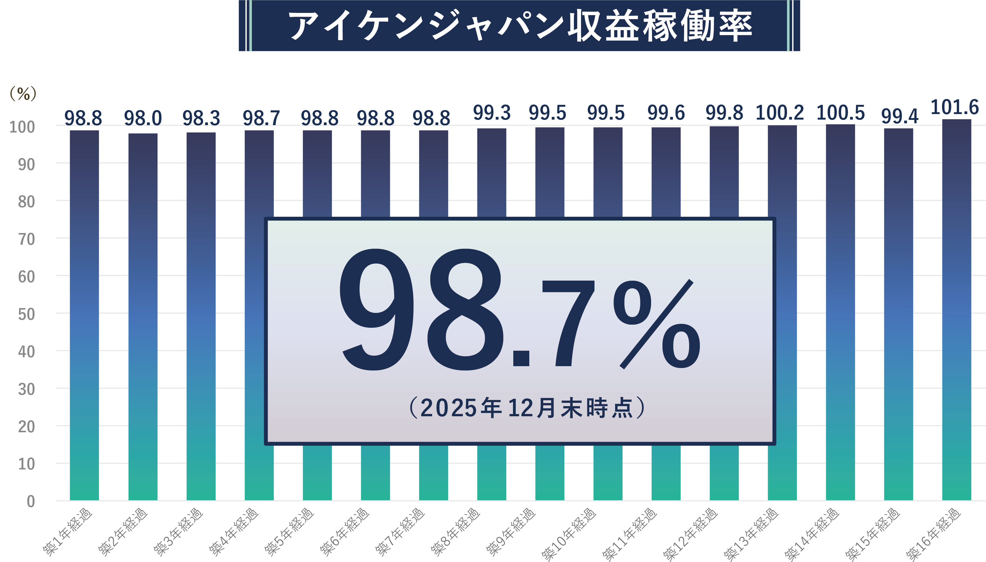 このグラフでは、築16年経過後も収益稼働率®98.7%と高水準で推移していることが分かります。