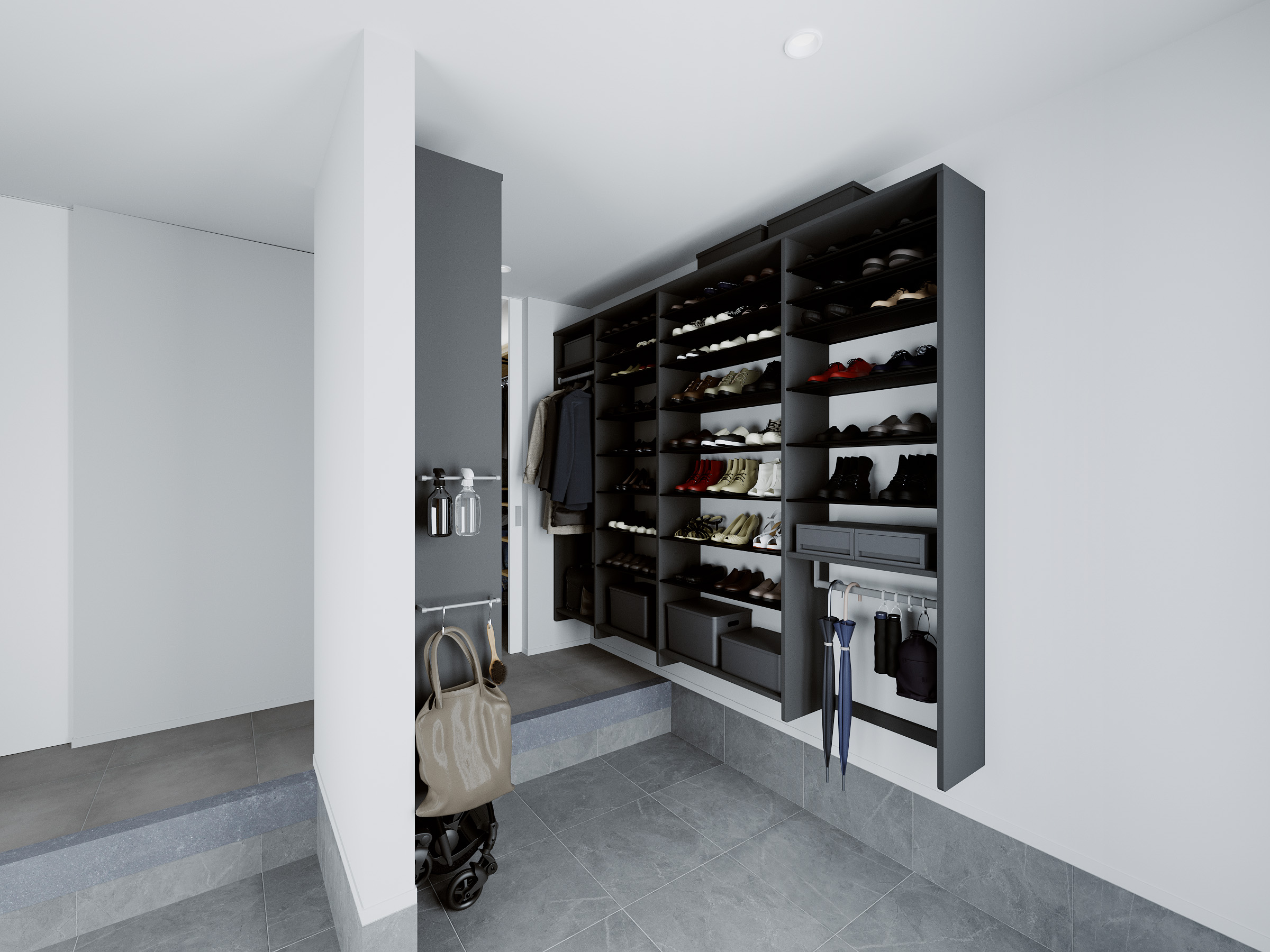 玄関をもっとスタイリッシュに、機能的に。ダークグレー色のⅡ型シューズクローク。