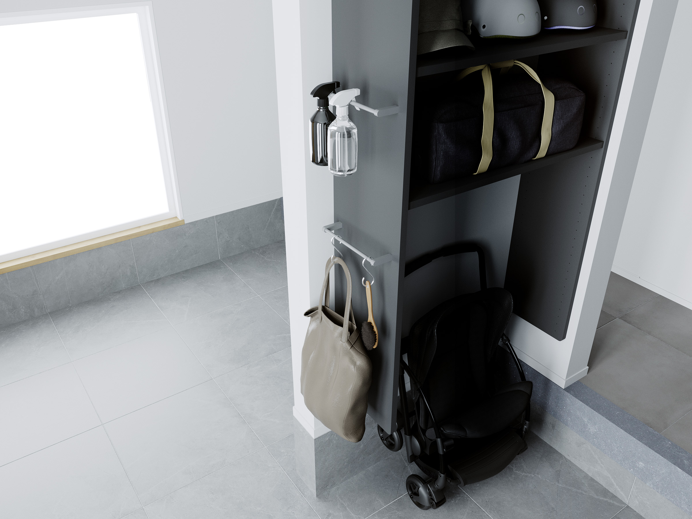 棚板「アートランバー」やクローゼット収納「ウォールゼット ノエル3」、キッチンバック収納「フリモ」、ニッチ収納「アドキューブ」と同色展開しており、住宅の収納プランをトータルにコーディネートでき、統一感のあるインテリアを実現します。