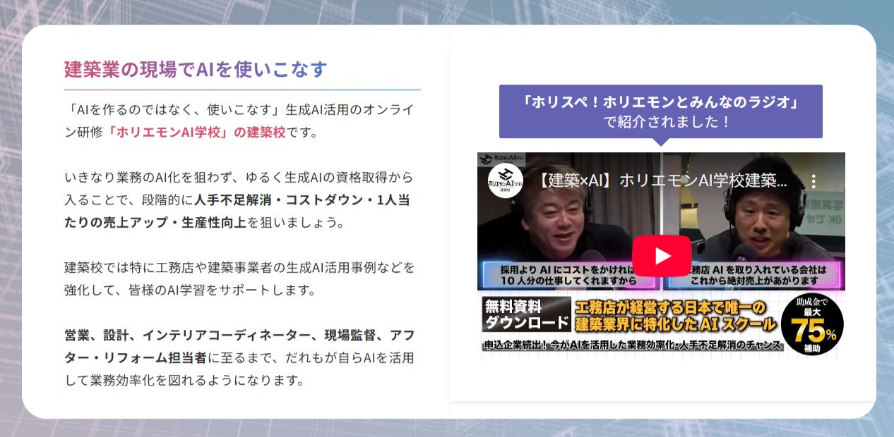 「ホリエモンAI学校 建築校」公式サイトを全面刷新。検索性と実用性を大幅強化