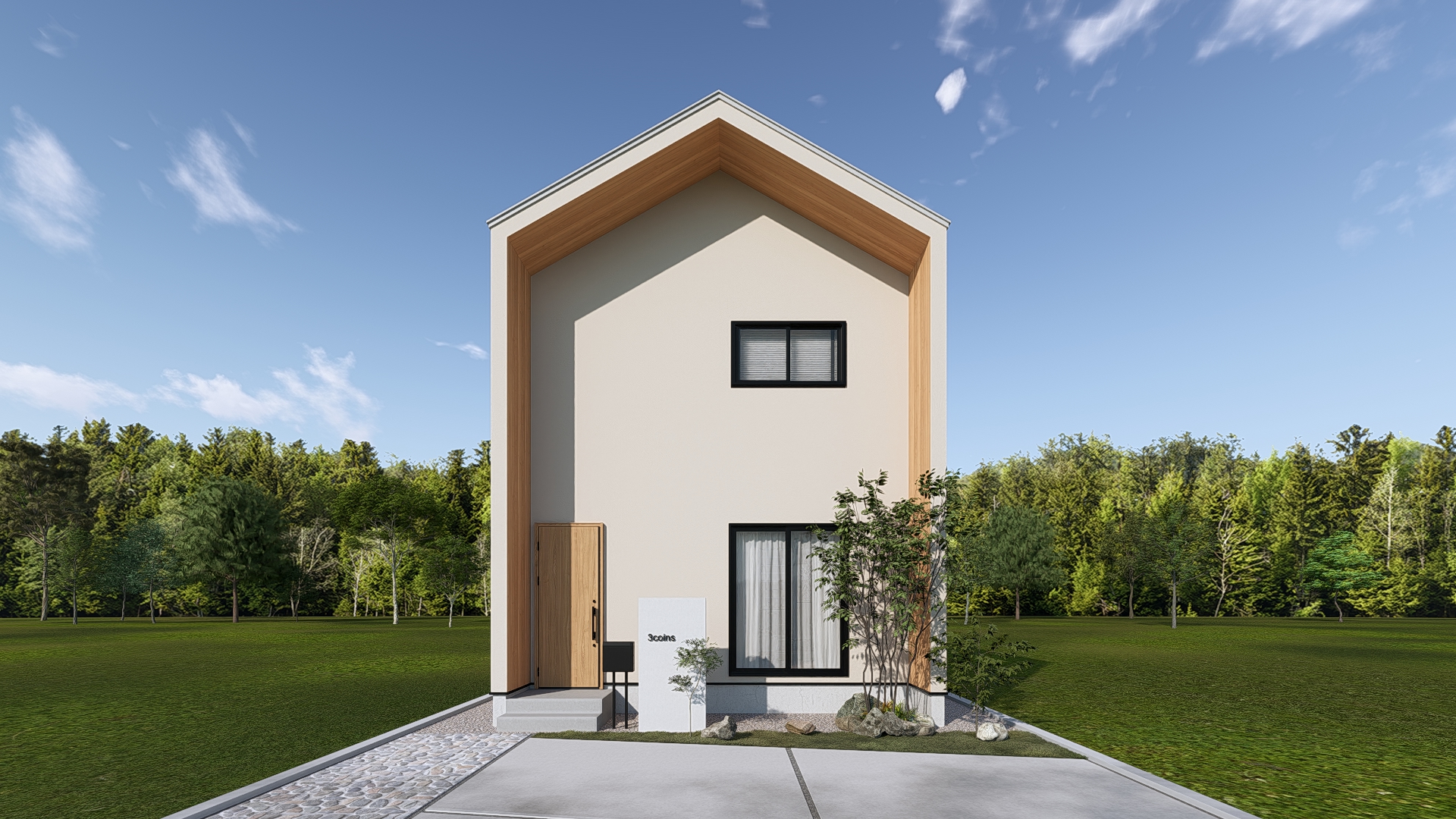 天然木とアイボリーのナチュラルカラーでまとめた外観は、温かみがあり、シンプルながらも細部にこだわりが光る仕上がりになっています。