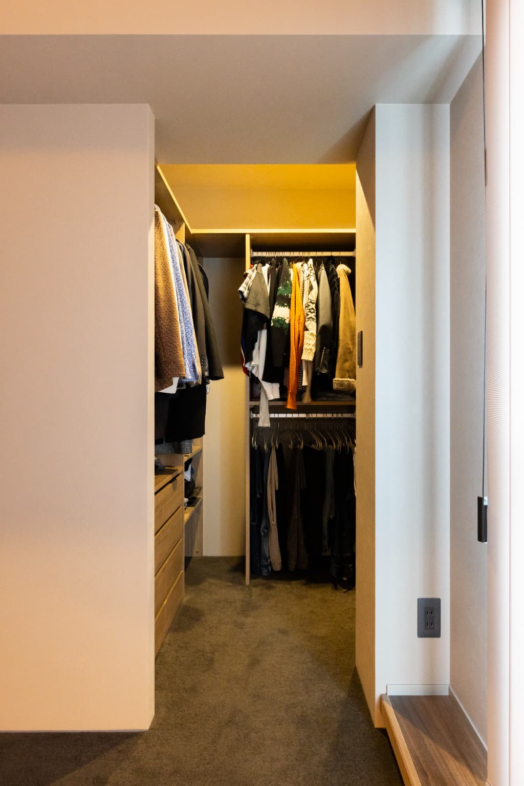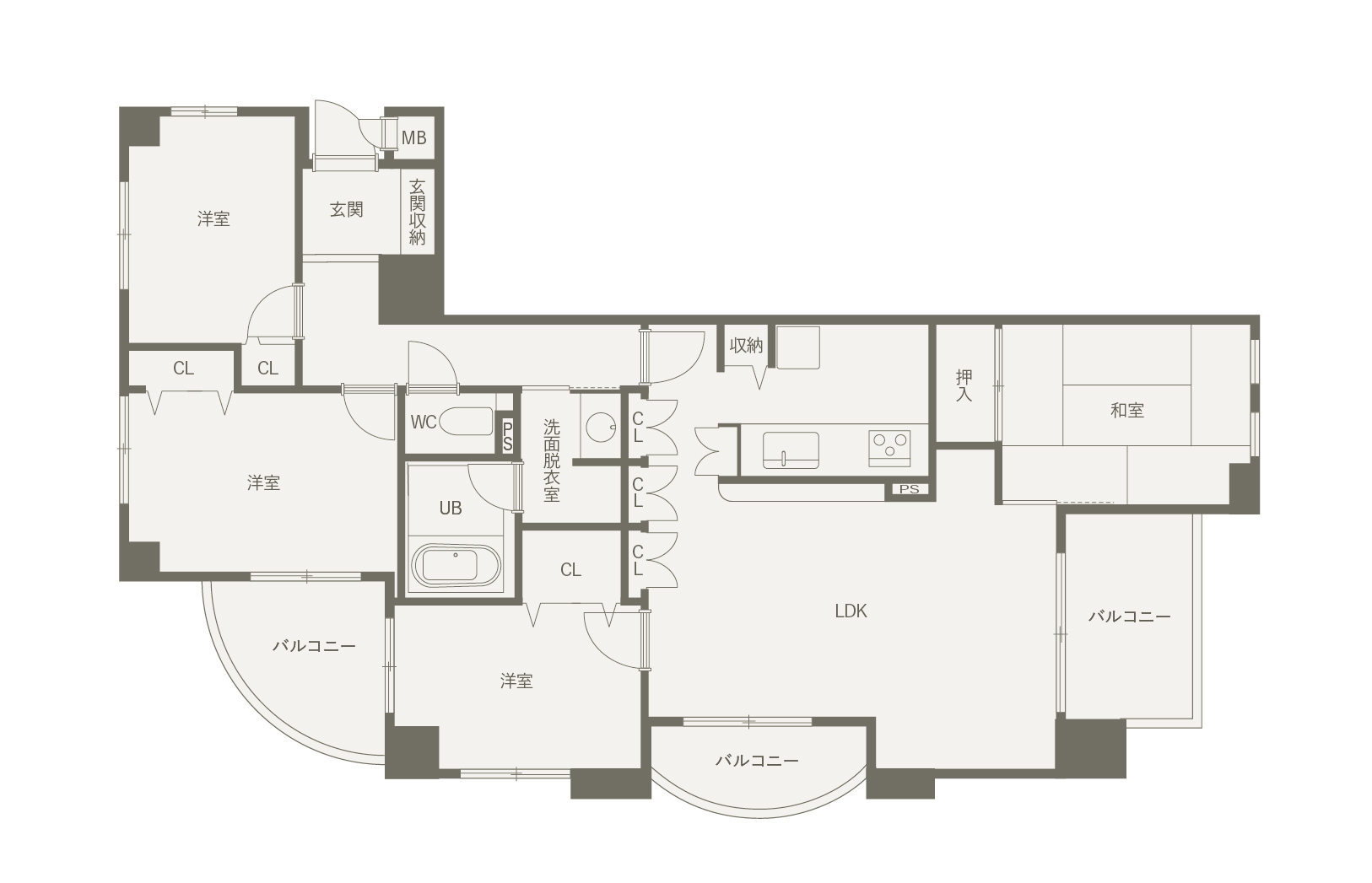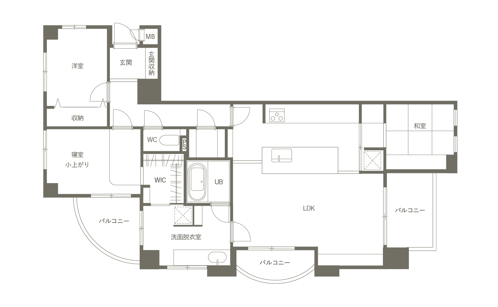 アイランドキッチンを起点に、水回りや収納スペースまでスムーズにつながる回遊動線を計画。限られたマンション空間の中で、「プライベート動線」と「パブリック動線」を分けて配置しています。生活動線が重なりにくく、毎日の動きが自然と快適になる間取りです。