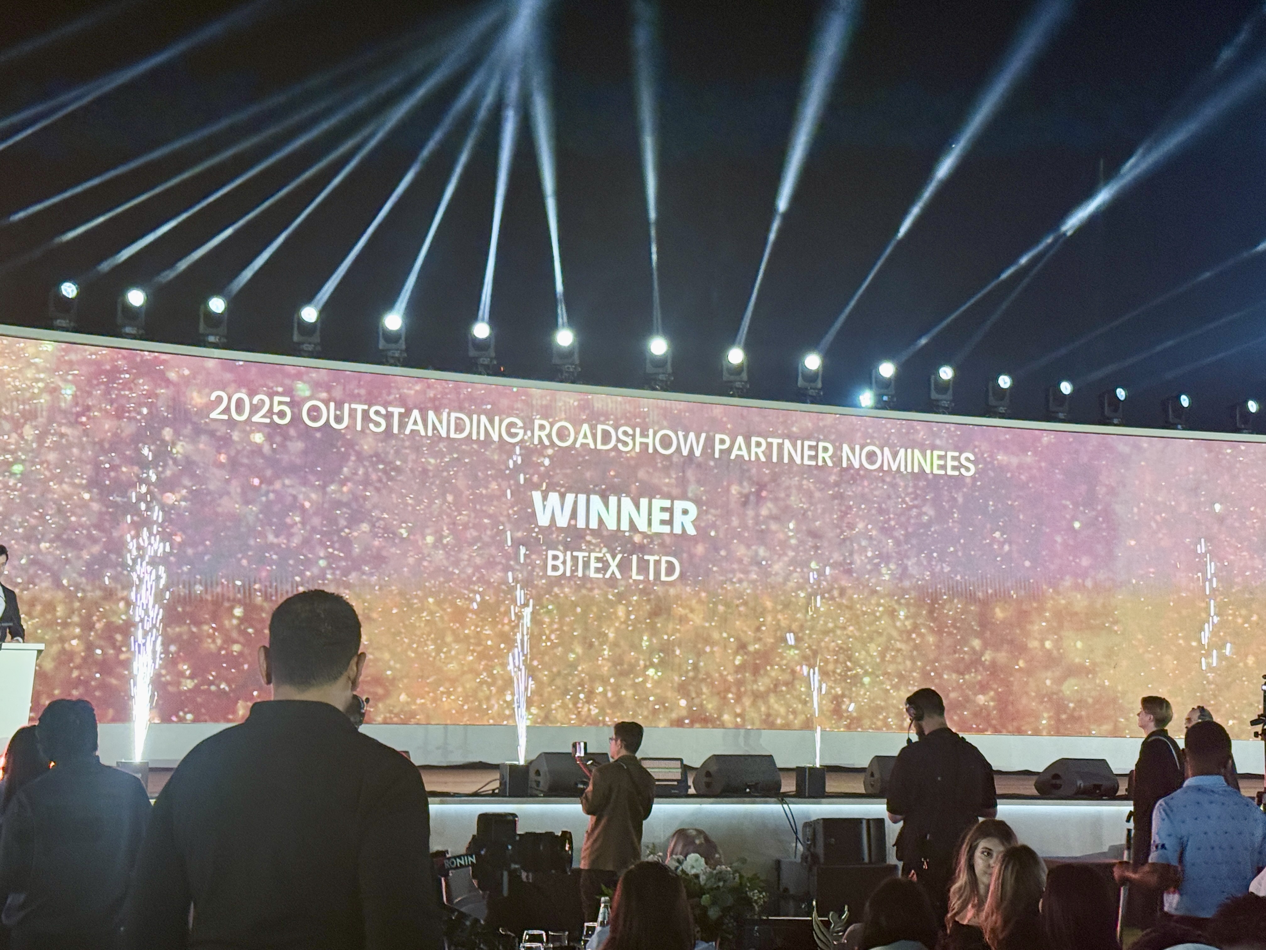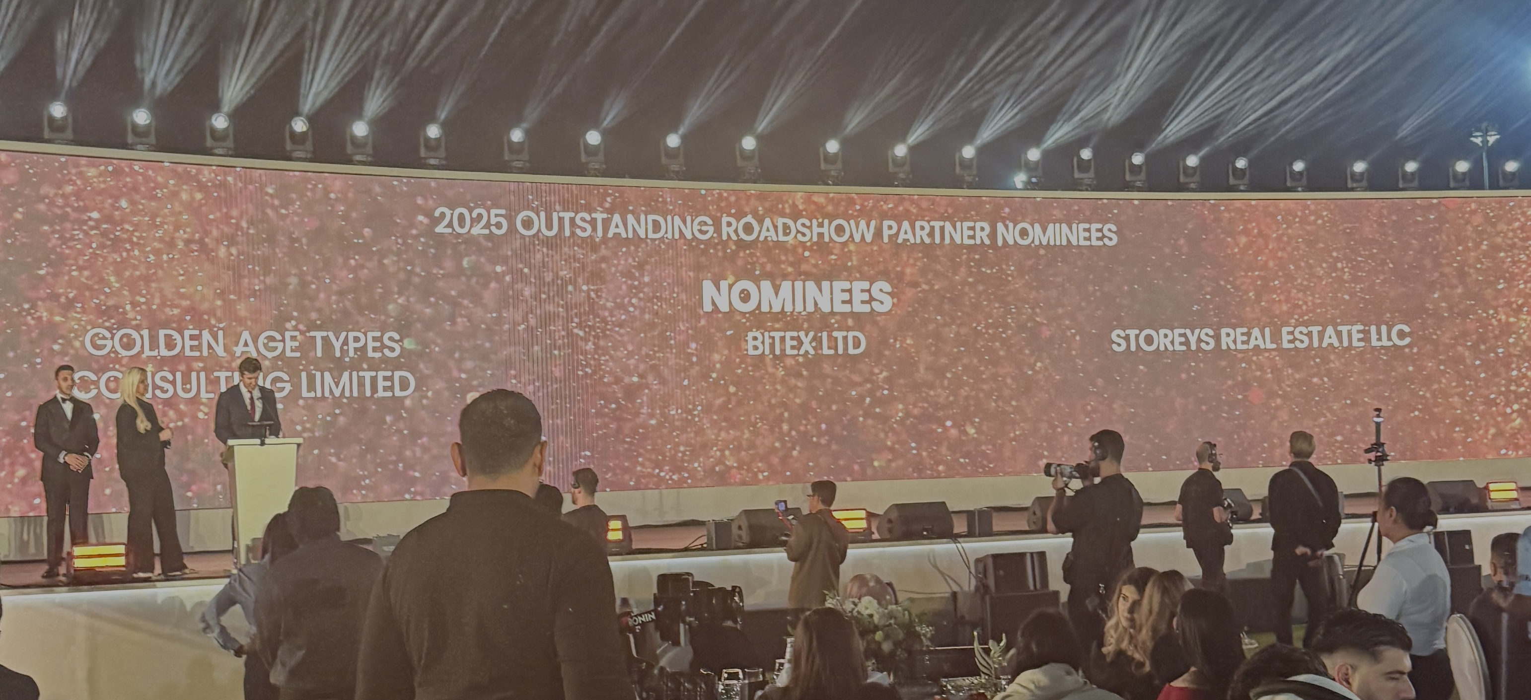 弊社が受賞した「OUTSTANDING ROADSHOW PARTNER AWARD」には、大手中国・ドバイ企業の3社がノミネートされる中、弊社BITEX REAL ESTATE BROKERAGE L.L.Cが賞を受賞しました。