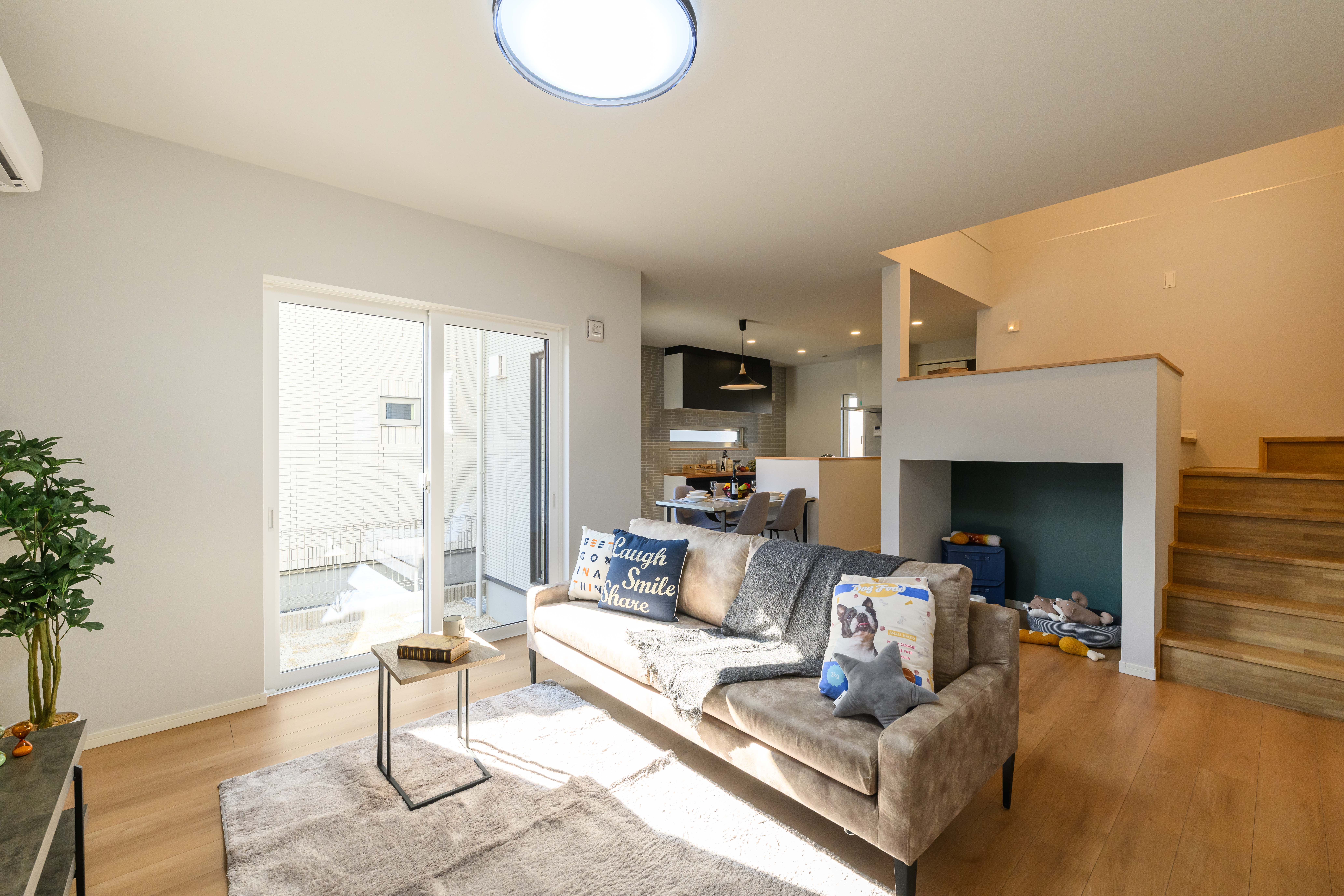 ペットと暮らす、中2階のある家。
