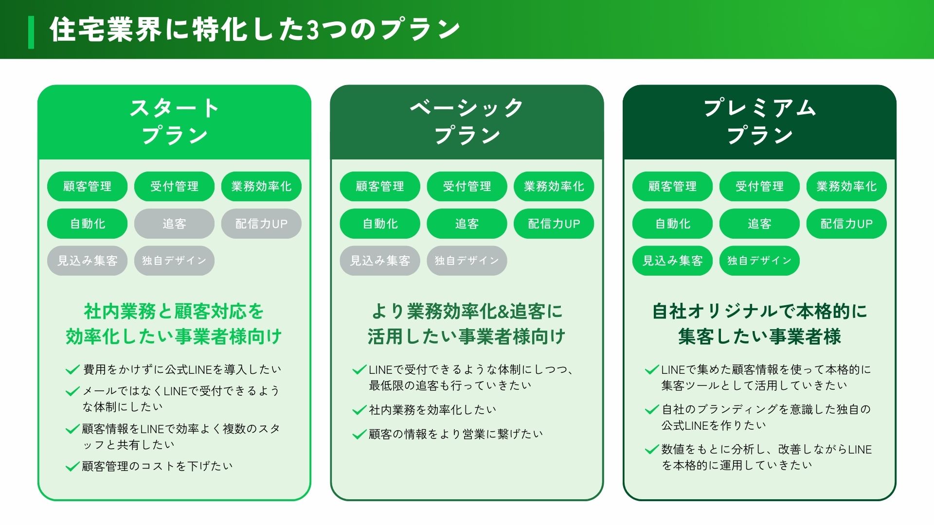 ■ 工務店向けLINE構築パッケージの3つの特徴