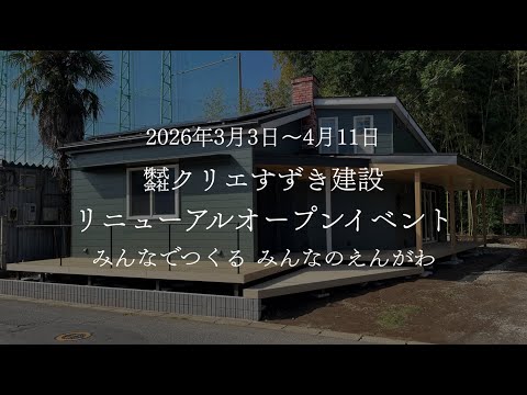 株式会社クリエすずき建設(本社:千葉県柏市、代表取締役社長:鈴木一功)は【クリエのえんがわプロジェクト 〜みんなでつくる みんなのえんがわ〜】の一環として実施していた、本社社屋のリノベーション工事を完了。「人と相談が集まる場所」を目指し、ご近隣の皆さまにとって立ち寄りやすい場所となるべく、リニューアルオープンイベントを開催いたします。
