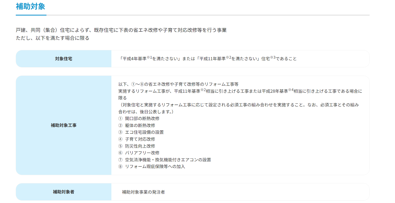これは、各省庁が「住宅全体の省エネ性能向上を伴う改修を重視する」という方向性を明確にしているためです。