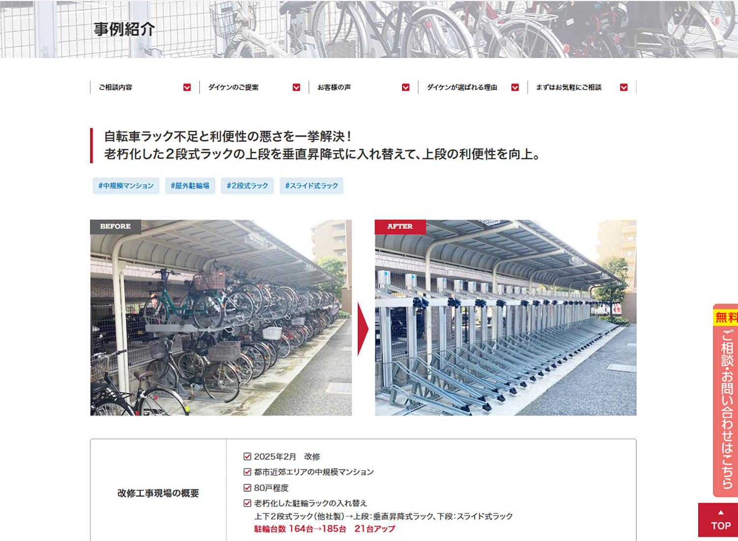 株式会社ダイケン、マンション駐輪場改修工事の専用相談サイト「リニューアル相談室」を大幅刷新