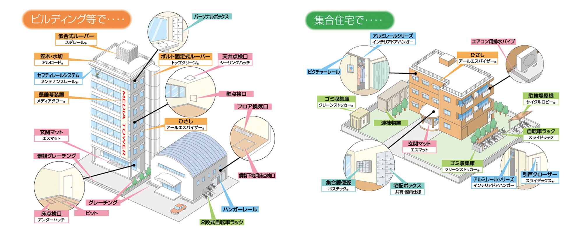 1924年に戸車の製造を以て大阪にて創業。以来、建築金物・内外装建材・エクステリアなど数百種類以上の製品を製造する「建築金物総合メーカー」として、日本の住環境を支えてきた。駐輪場屋根・自転車ラックの製造ではトップメーカーであり、日本で初めて家庭用物置を製造した歴史も持つ。