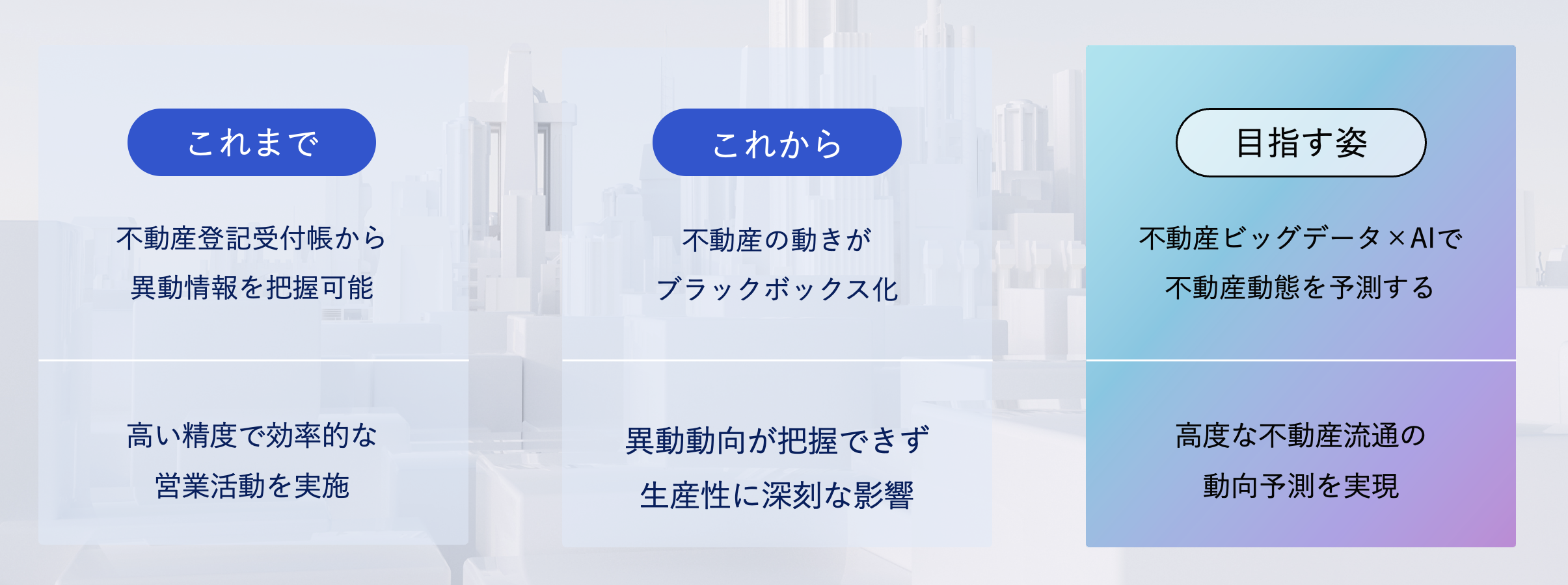 当社ではこれらの課題を解決するために、将来の不動産異動をAIで予測する「不動産動態予測コンソーシアム」を設立いたしました。