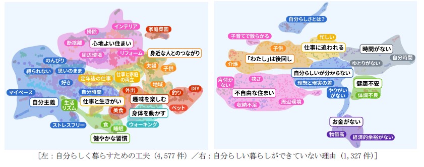 今回の調査では、従来の分析手法に加え、AIを活用したブロードリスニングツール「Talk to the City」(※)を用いて、回答内容を分類・要約し、さらに主要テーマに整理・可視化しました。生活者が「どのような工夫を通じて“自分らしさ”を実現しているのか」、また「実現できていない場合の障壁は何か」といった点について、多様性と共通点を俯瞰的かつ客観的に捉えることを目指しました。調査結果は、当社グループにおいて、生活者起点から新たな商品やサービスを検討する際の示唆として活用しており、マーケティングの重要な基盤となっています。
