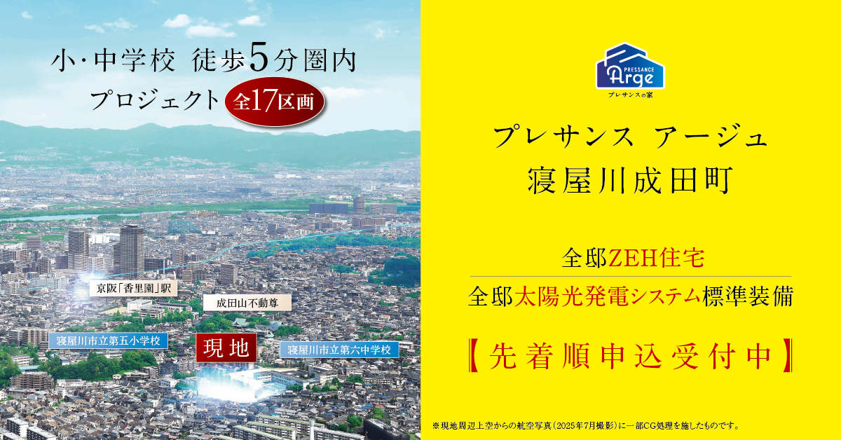 株式会社プレサンスコーポレーションのグループ会社である株式会社プレサンス住販は、寝屋川エリアにて開発を進めております「小・中学校徒歩5分圏内プロジェクト」について、販売が開始いたしました。