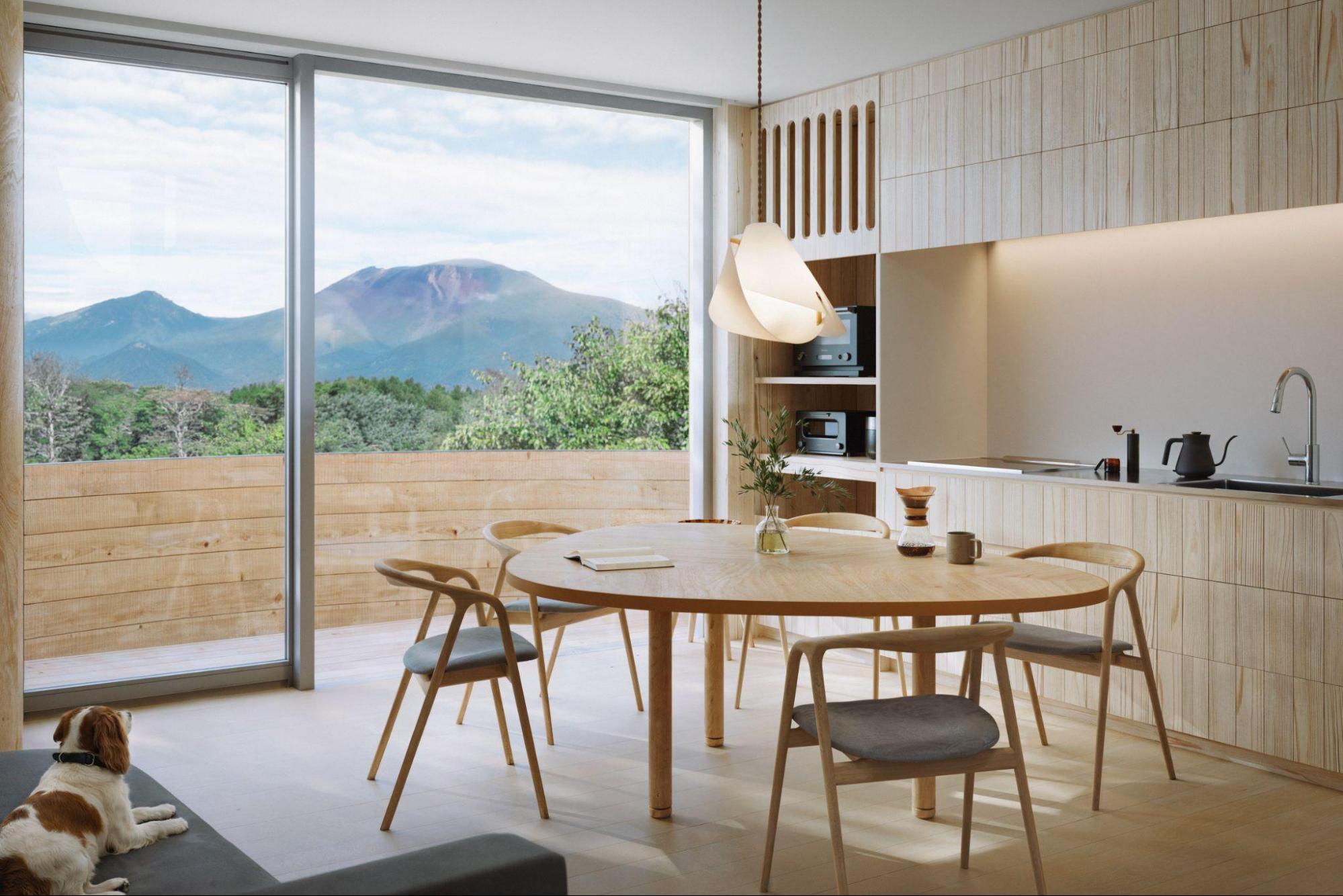 本プロジェクトは、建築家 加藤匡毅氏が率いるPuddle が設計した新建築モデル「HIKE」を、軽井沢で初めて展開するものです。全室から浅間山を望む広々とした空間で、家族が“暮らすように過ごす”滞在体験を実現します。