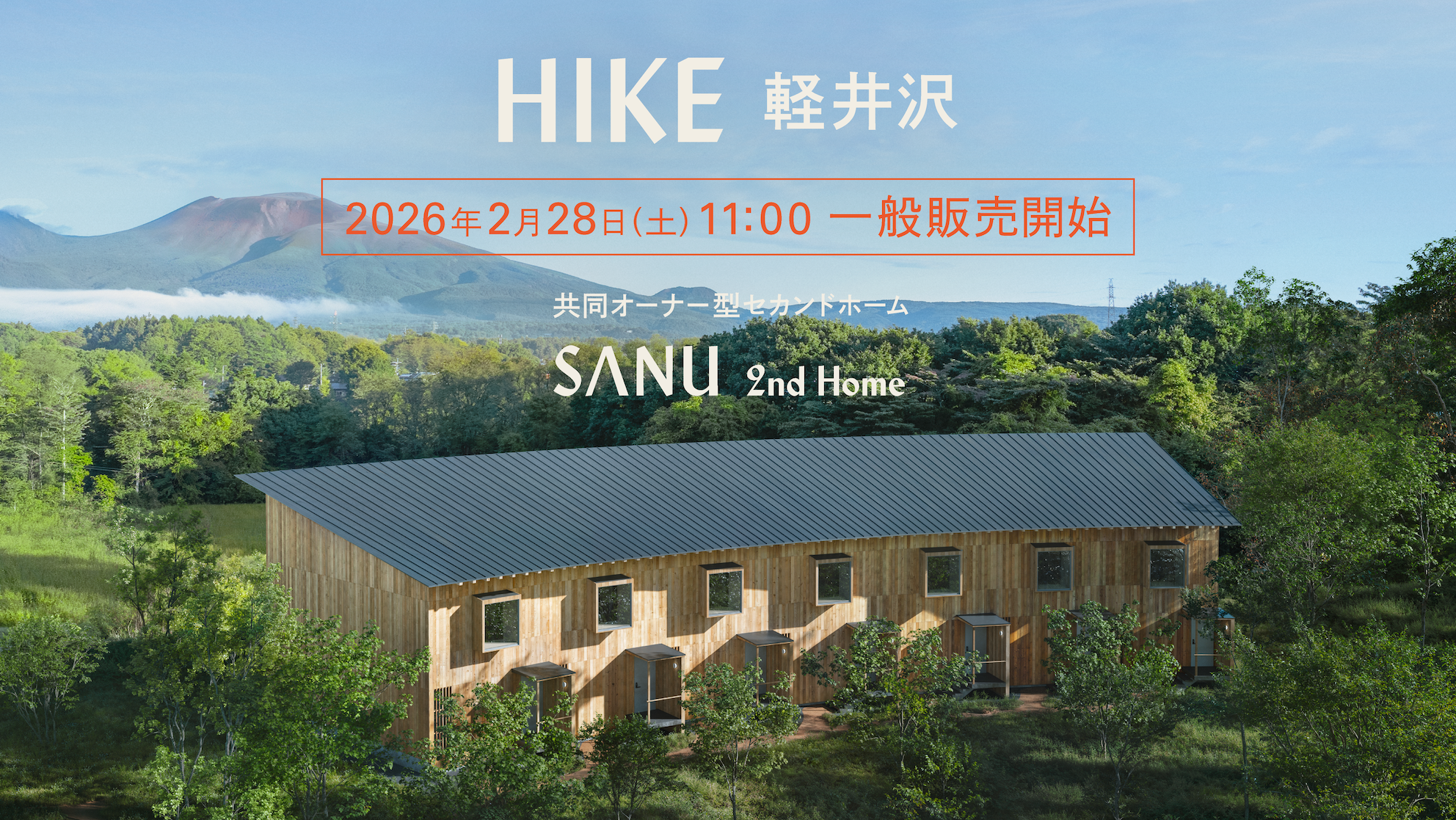 国内最大級のシェア別荘サービス「SANU 2nd Home」を展開する株式会社SANU(本社:東京都目黒区、代表取締役:福島 弦)は、2026年2月28日(土)11:00より、共同所有型セカンドホーム「SANU 2nd Home Co-Owners」の新プロジェクト 「HIKE 軽井沢」 の販売を開始いたします。