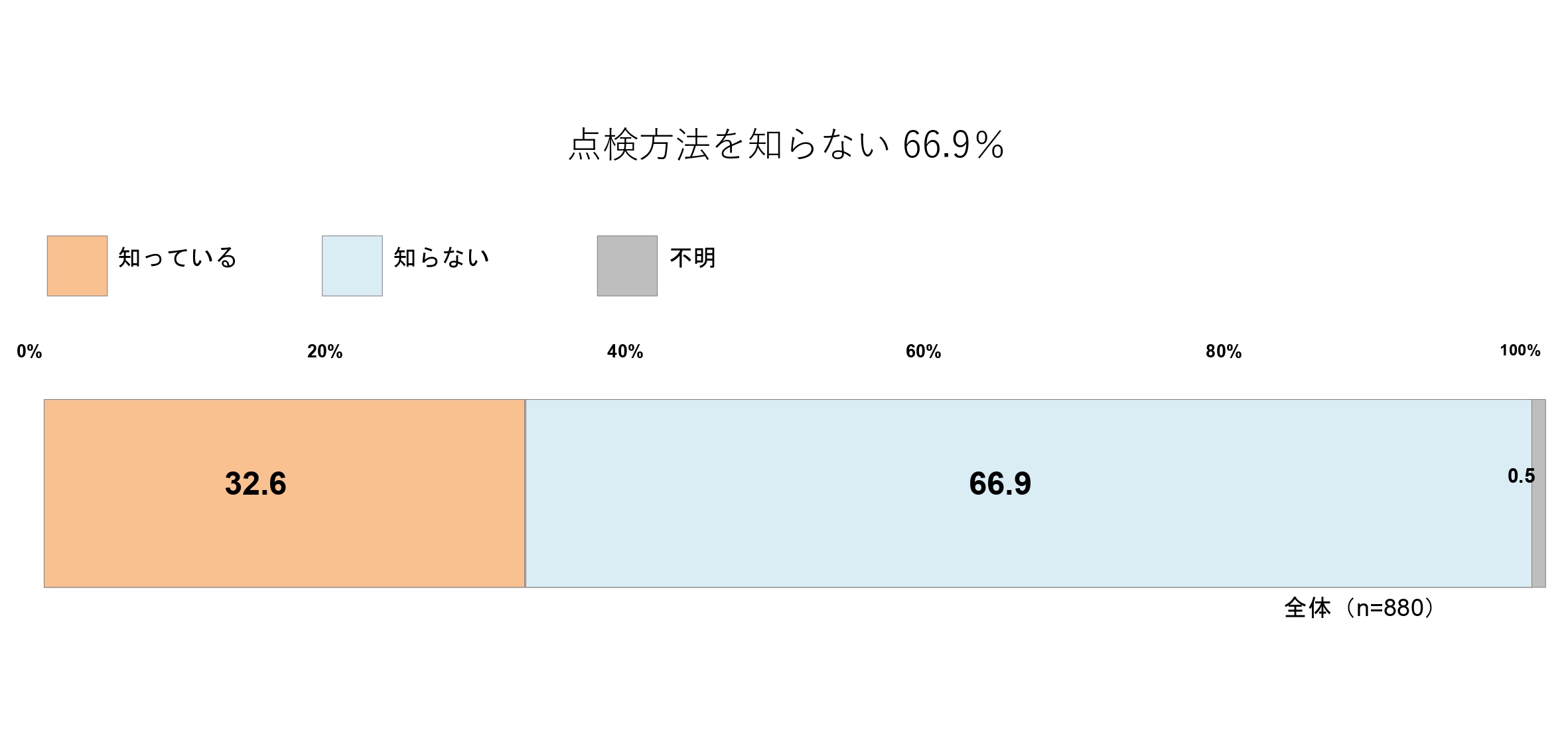 点検方法を知らない人が66.9%、知っていても定期点検は2割未満