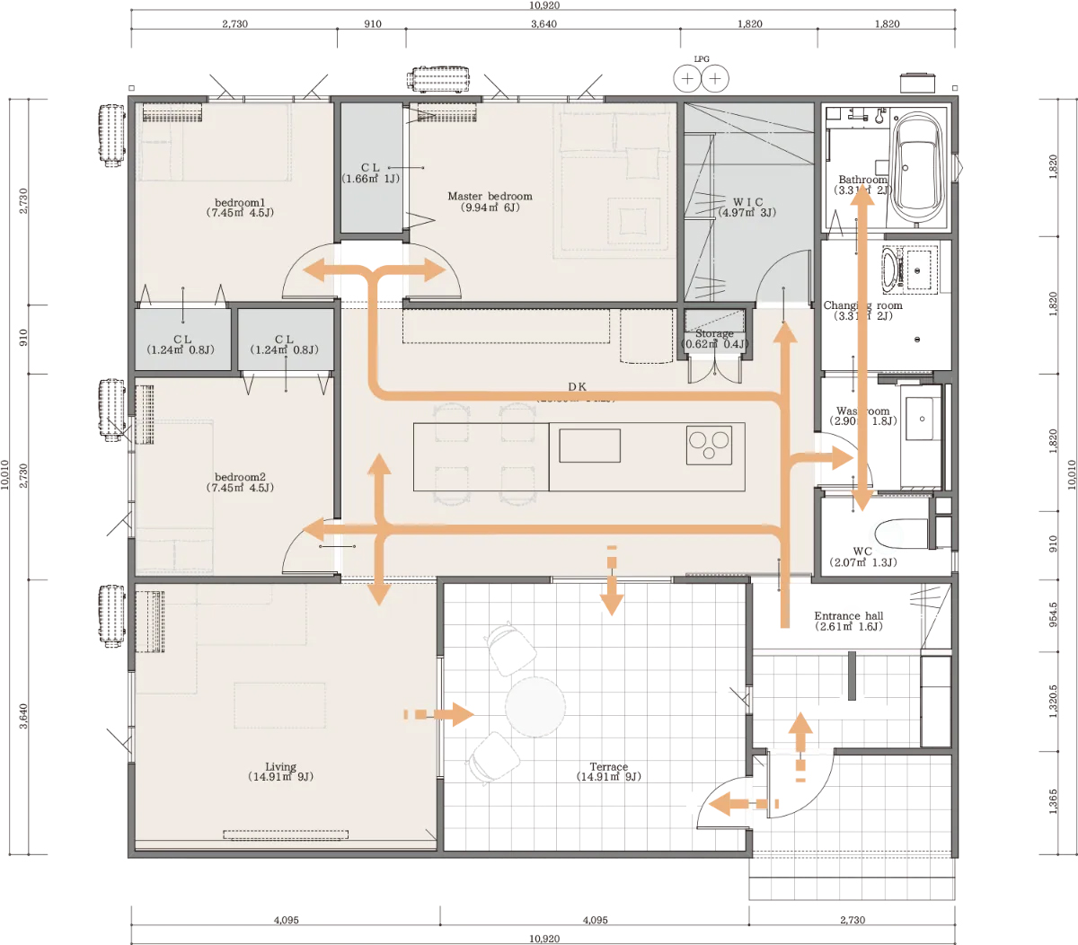 ・回遊動線による効率的な生活設計