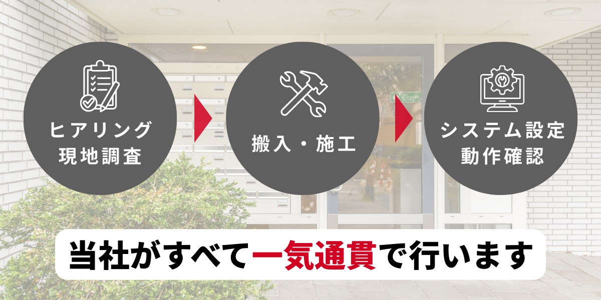 現地調査から施工・設定まで、導入に必要な工程をすべて当社が一括対応します。
