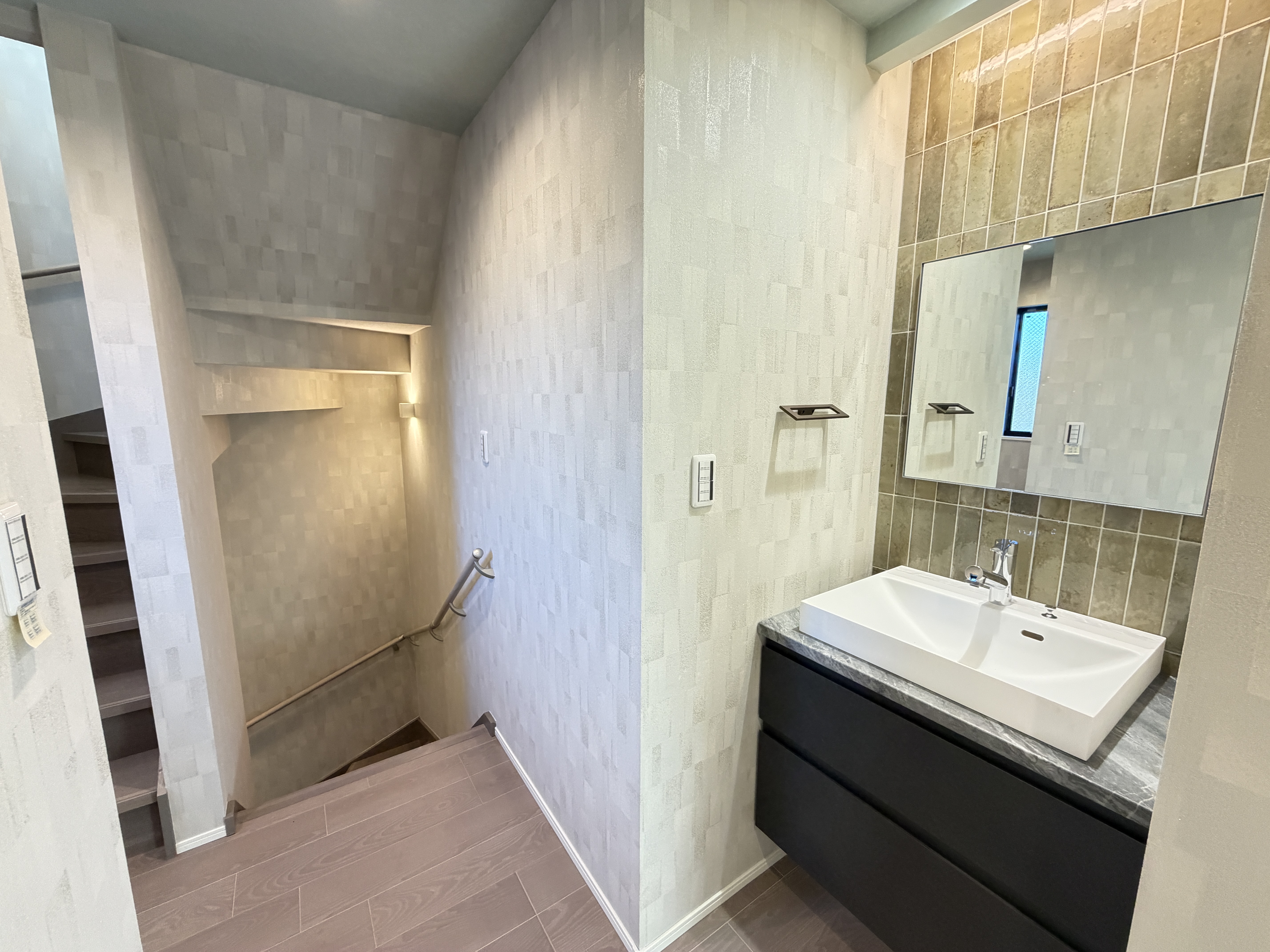洗面所とお手洗いには清潔感とデザイン性を兼ね備えた最新設備を導入。タンクレストイレは空間をすっきりと見せるだけでなく、掃除のしやすさも魅力です。また、全てのお手洗いに独立した手洗い場を設けることで、来客時にも安心して使用できる環境を整えました。