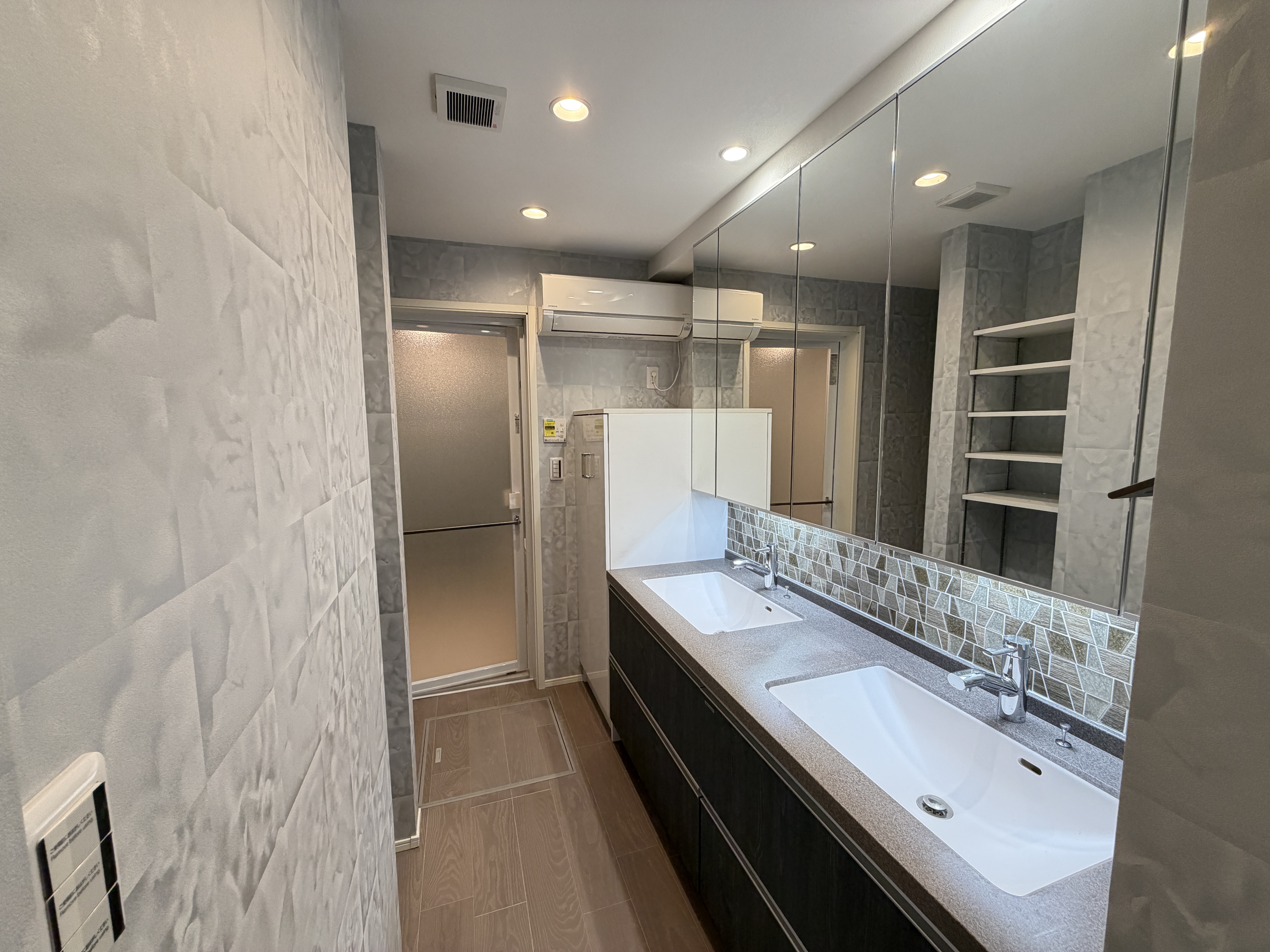 さらに洗面所には、家族が同時に使用できる2ボールの洗面台を採用。忙しい朝の時間も待ち時間を気にせず、ストレスフリーで支度ができます。ゆとりのあるスペースは収納力にも優れ、日常の生活動線を快適にサポートします。