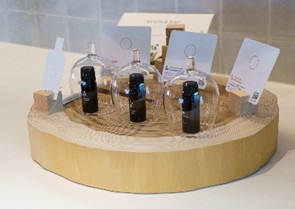 「リビングラウンジ」において、ご入居者さまがその時々の活動に応じて最適な香りを選び利用できる「アロマバー」を提供します。「アロマバー」の共同住宅への採用は本物件が第一号となります。(サービス提供:アットアロマ株式会社)