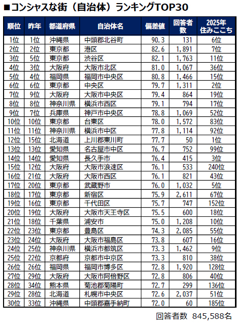 コンシャスな街(自治体)ランキング2025<TOP100>
