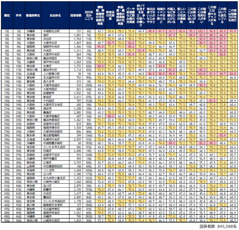※表内に記載している「住みここち」は、2025年8月6日に発表している全国版の順位を記載しています。詳しい順位はWEBサイトをご参照ください。