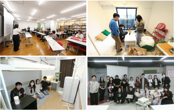 学生が住みやすい、友達に自慢したくなるお部屋を予算内でコーディネートする学生によるモデルルーム制作を行いました。生徒がいくつかのチームに分かれ、内容を検討し、プレゼンを通過したチームが実際に当社の学生マンション内にモデルルームを作り上げました。