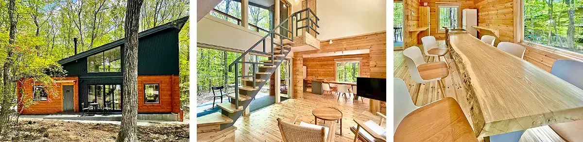 これらのログハウス施工作品は、これまでの「丸太小屋」を彷彿させるイメージから脱却し、都市部の住宅街にも溶け込むモダンでスタイリッシュなデザインになっています。