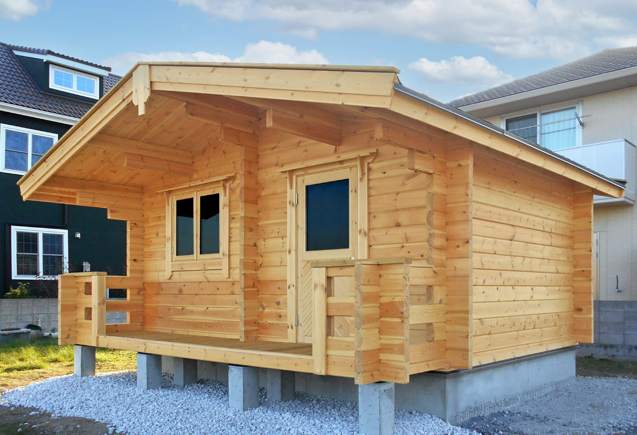日本にログハウスメーカーが数社しかなかった時代から、ミニログハウスが「流麗なる誇り」で定評のあるログハウスメーカーのキット商品です。