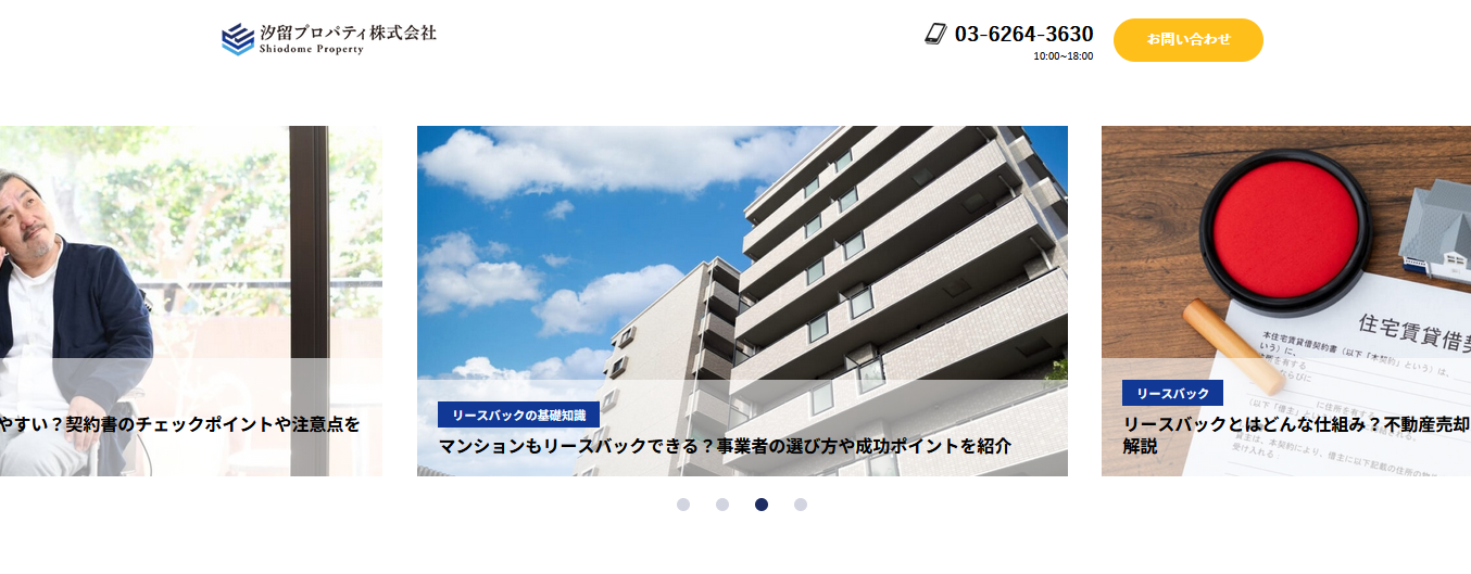 当社は関連会社である汐留グループ内の各種士業法人と連携して、リースバックを用いた不動産の買取や資金調達の支援を行っております。そのノウハウの発信を情報メディアの運営を通じて積極的に行っております。