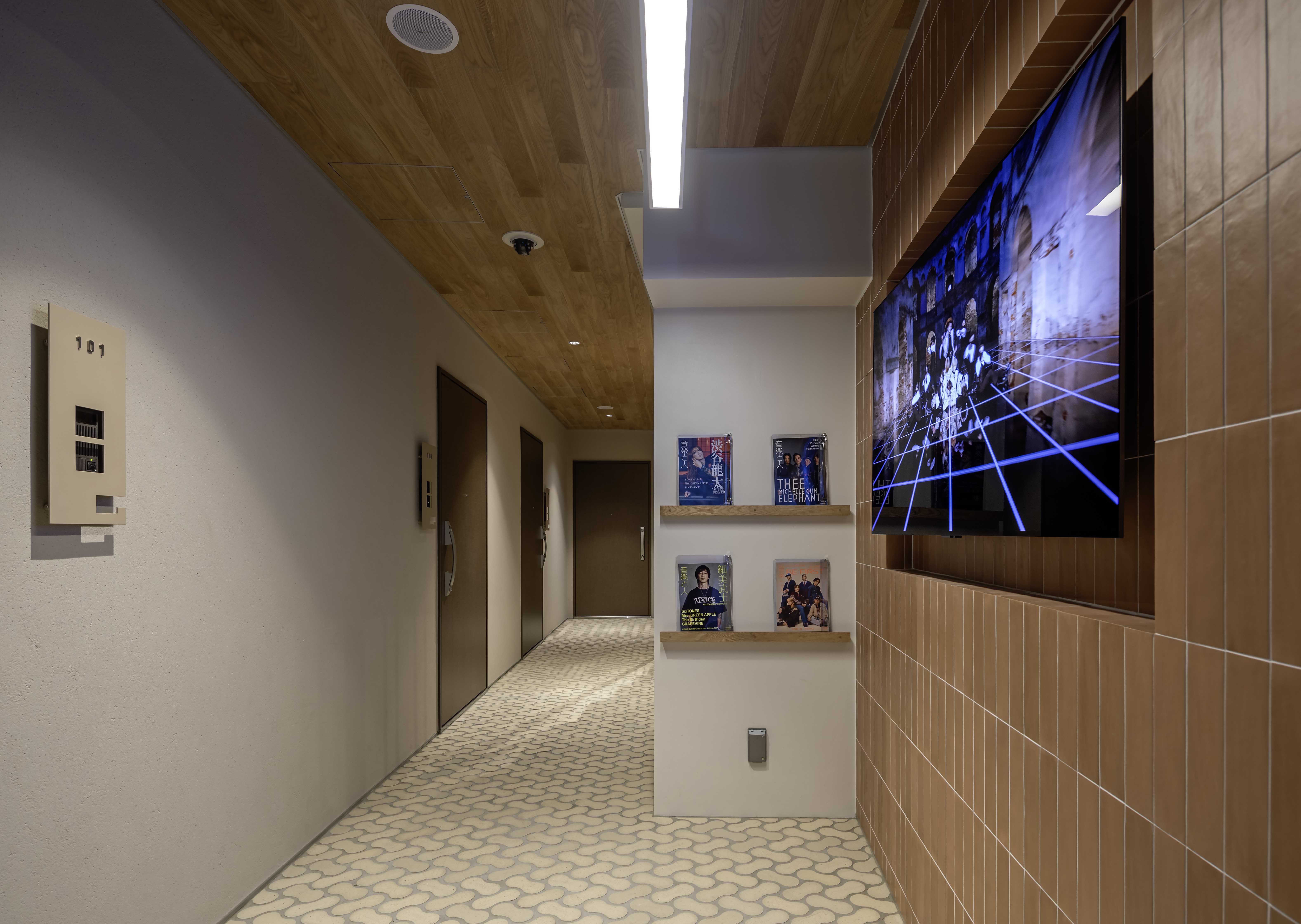 「サウンドプルーフステージ桜新町」は、カルチャー・流行の発信地「渋谷」駅へのアクセスが便利でありながら、上品で洗練された街並みが広がる東急田園都市線「桜新町」駅徒歩8分の好立地に位置する防音賃貸マンションです。レンガ調タイルと木目ルーバーを配した外観は、高級感と温かみを感じさせ、曲線的なバルコニーとルーバーの組み合わせにより柔らかな印象とリズム感を表現。住戸は、防音・防振・音響設計が三位一体となった最先端テクノロジーにより、広々としたリビング・ダイニングにてグランドピアノやギター、ドラムなどの楽器演奏、レコーディング、ライブ配信などを24時間お楽しみいただけます。また、可動間仕切りにより寝室スペースもしっかりと確保できます。このほか、エントランスホールでは音楽番組を24時間放送し、音楽雑誌も設置しています。