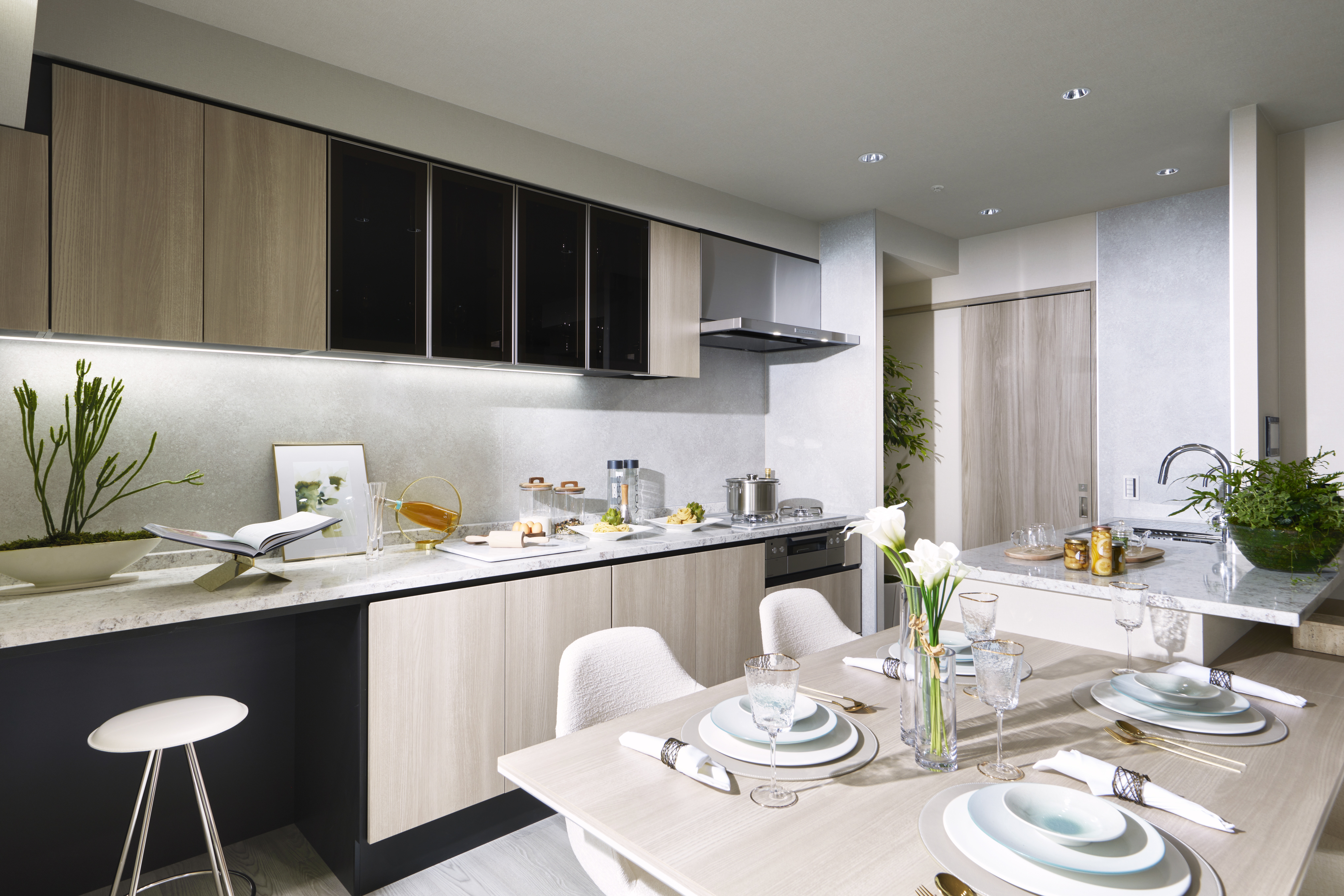 外観・内観においては、阪神間モダニズムの美と現代の感性を融合。落ち着いた佇まいの中に、華やかさと気品が感じられるデザインを実現しました。