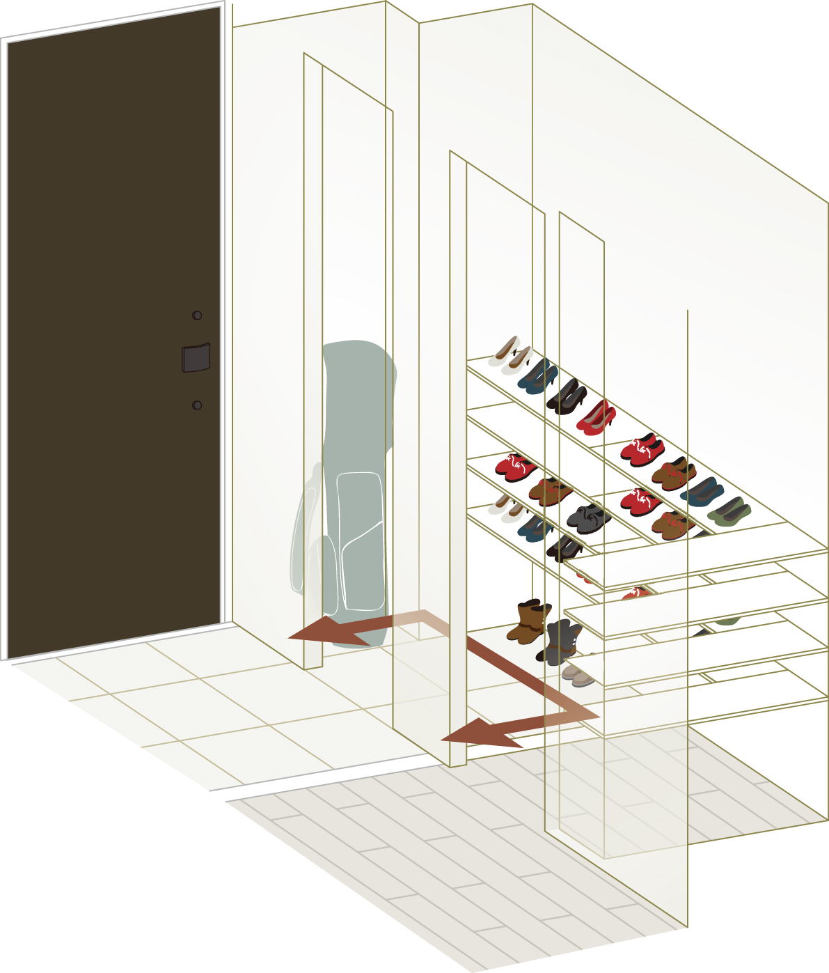 大容量のウォークスルーシューズクロゼット「DOMA」を採用。