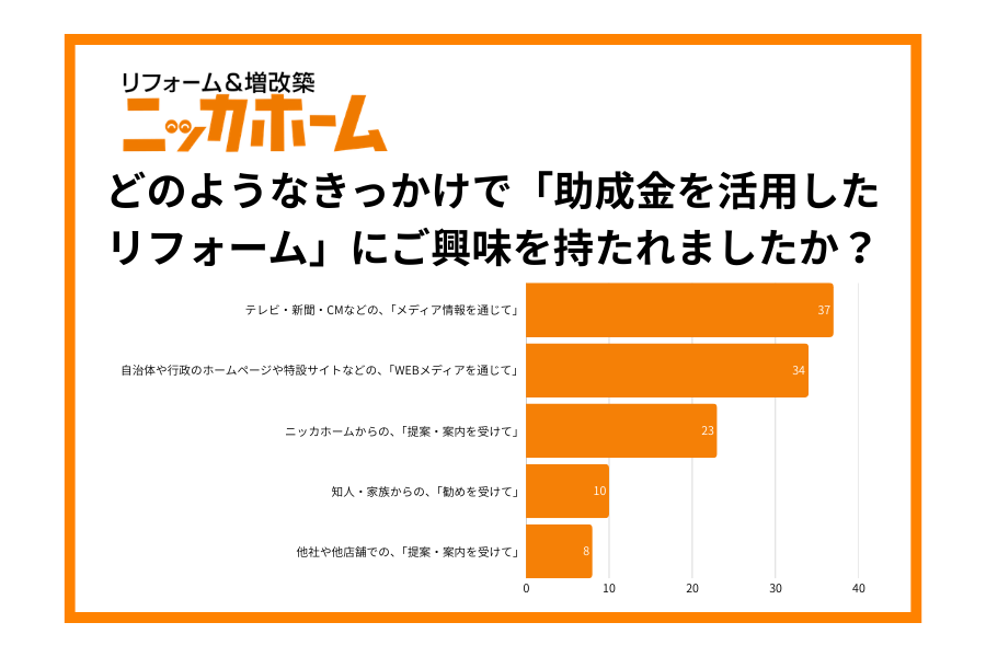 ニッカホーム株式会社(本社:愛知県名古屋市緑区篭⼭、代表取締役社長:西田裕久、以下 ニッカホーム)の関東支社は、OB顧客130名を対象にアンケート調査を実施しました。