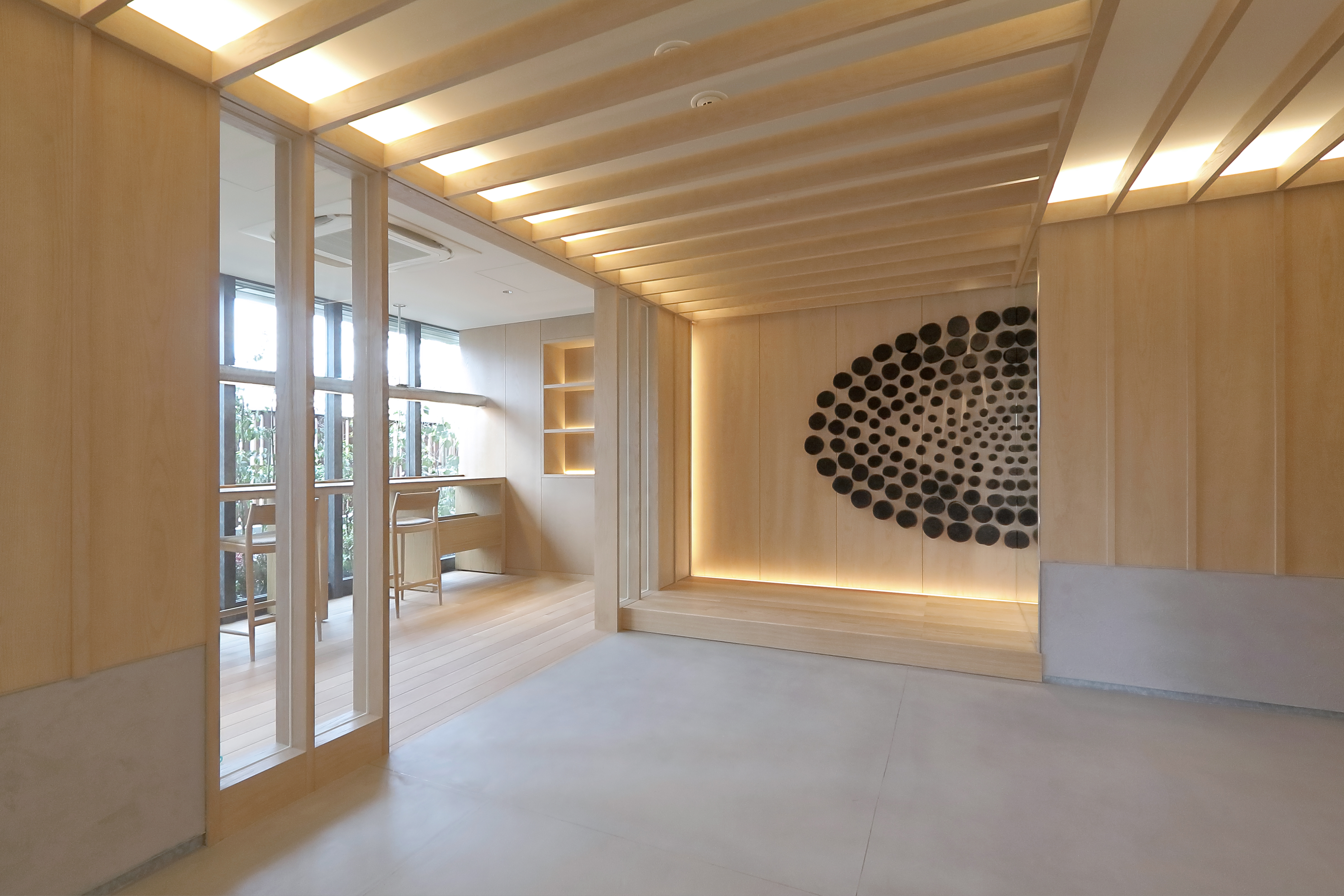 本物件は、主要構造部に木材を使用するだけでなく、共用部および一部の住戸の内装仕上げ材において天然木材を採用しています。内装の木質化は、香りによりリラックスし心地よさを得られるなどの心身面の効果や、集中力が高まり生産性が高まるなどの効果が得られることが明らかになってきています※5。