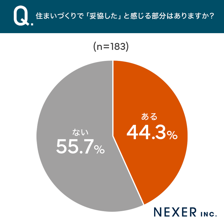 ■44.3%が、住まいづくりで「妥協した」と感じる部分が「ある」と回答