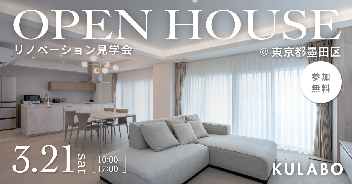 愛知県・岐阜県・東京都(一部エリア除く)でリノベーション事業を展開する株式会社sumarch(本社:愛知県名古屋市中村区、代表取締役:鳥居儀彰、以下KULABO)は、マンションリノベーション見学会を2026年3月21日(土)に東京都墨田区にて開催いたします。