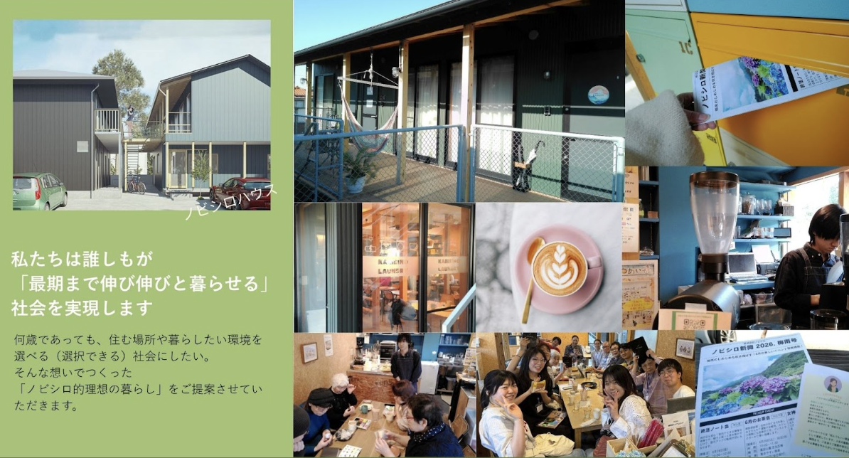 現在、ノビシロは神奈川県藤沢市に第一号事例となる訪問診療クリニックやコミュニティカフェなどが併設された「ノビシロハウス亀井野」を企画・運営しております。大きな特徴としては、高齢者に加えて若者が安価な家賃で入居できる代わりに高齢者の見守り役を担う、ソーシャルワーカー入居制度をとっており、月1回の入居者お茶会など多世代コミュニティとして運営しています。