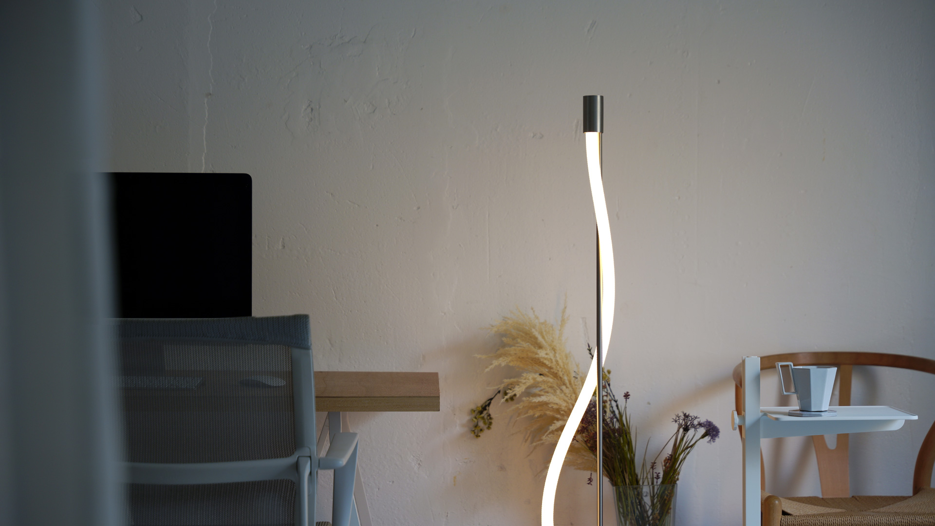 従来のフロアランプは“完成された形”を提供するものでしたが、本製品はあえて完成形を固定せず、使い手が空間や気分に合わせて光の形を変えることができます。