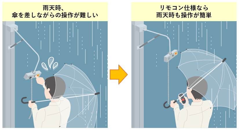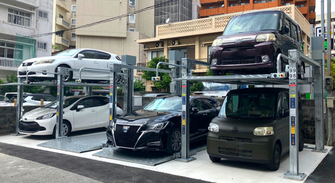 販売開始に先駆け、「塩害対策仕様」を沖縄県の集合住宅へ導入しました。塩害地域でも設置できることはもちろん、比較的降水量の多い地域であるということも考慮し、オプションのひとつである「リモコン仕様」も採用しています。操作盤を使用せず、リモコンだけで入出庫操作が可能なため、雨天時に傘を差しながらでも片手でスムーズに操作できます。