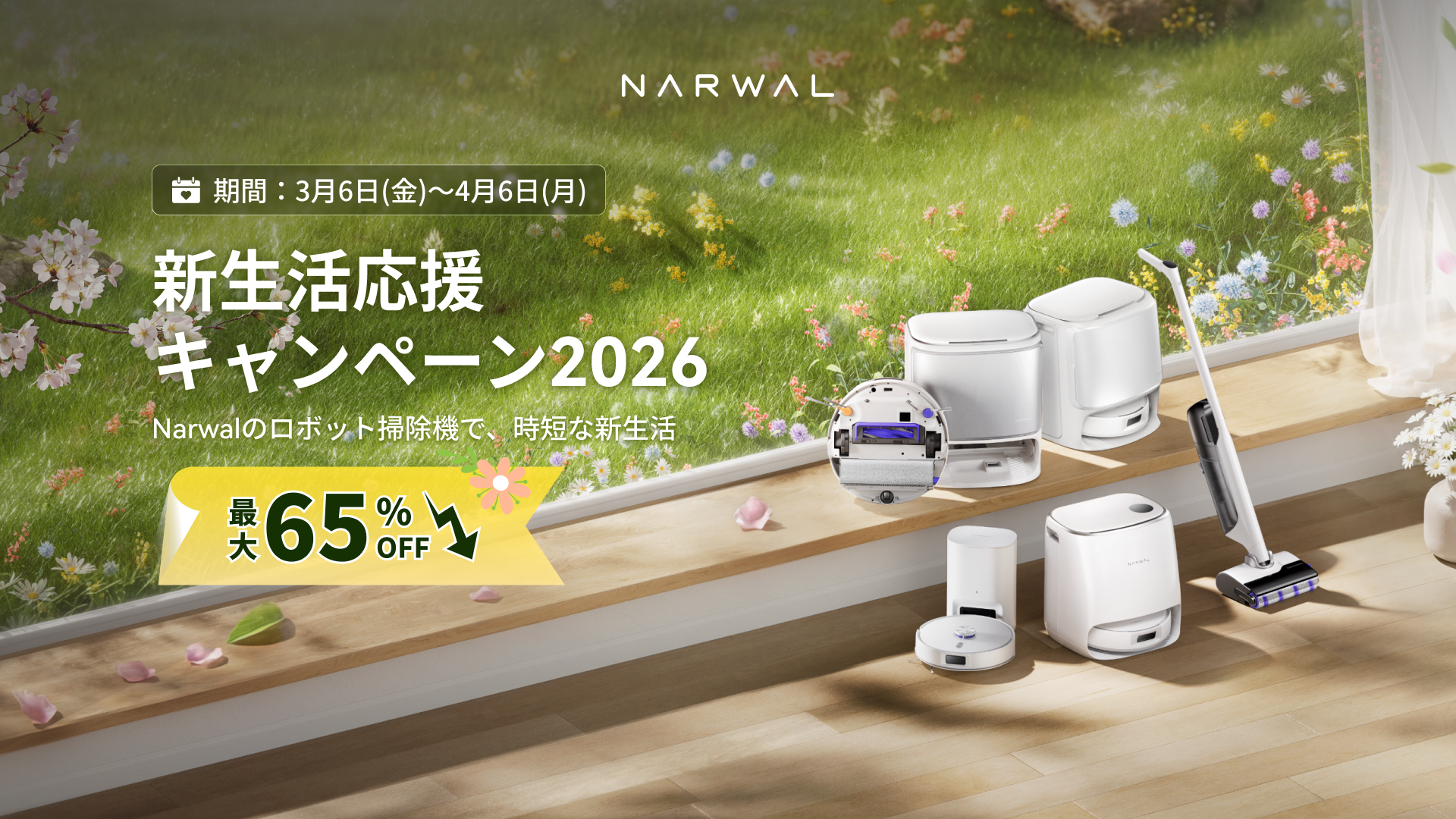Narwal Japan株式会社(東京都中央区)は、2026年3月6日(金)より1か月間、最大65%OFFの「Narwal 新生活応援キャンペーン2026」を開催します。